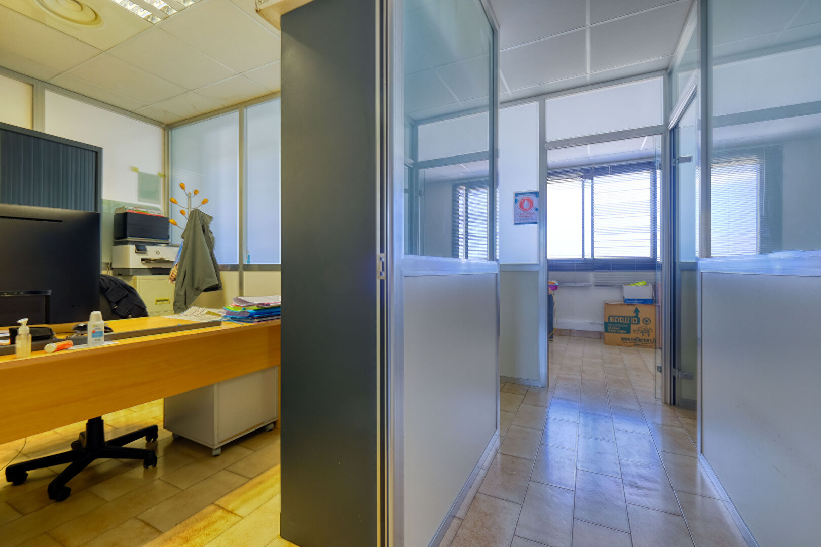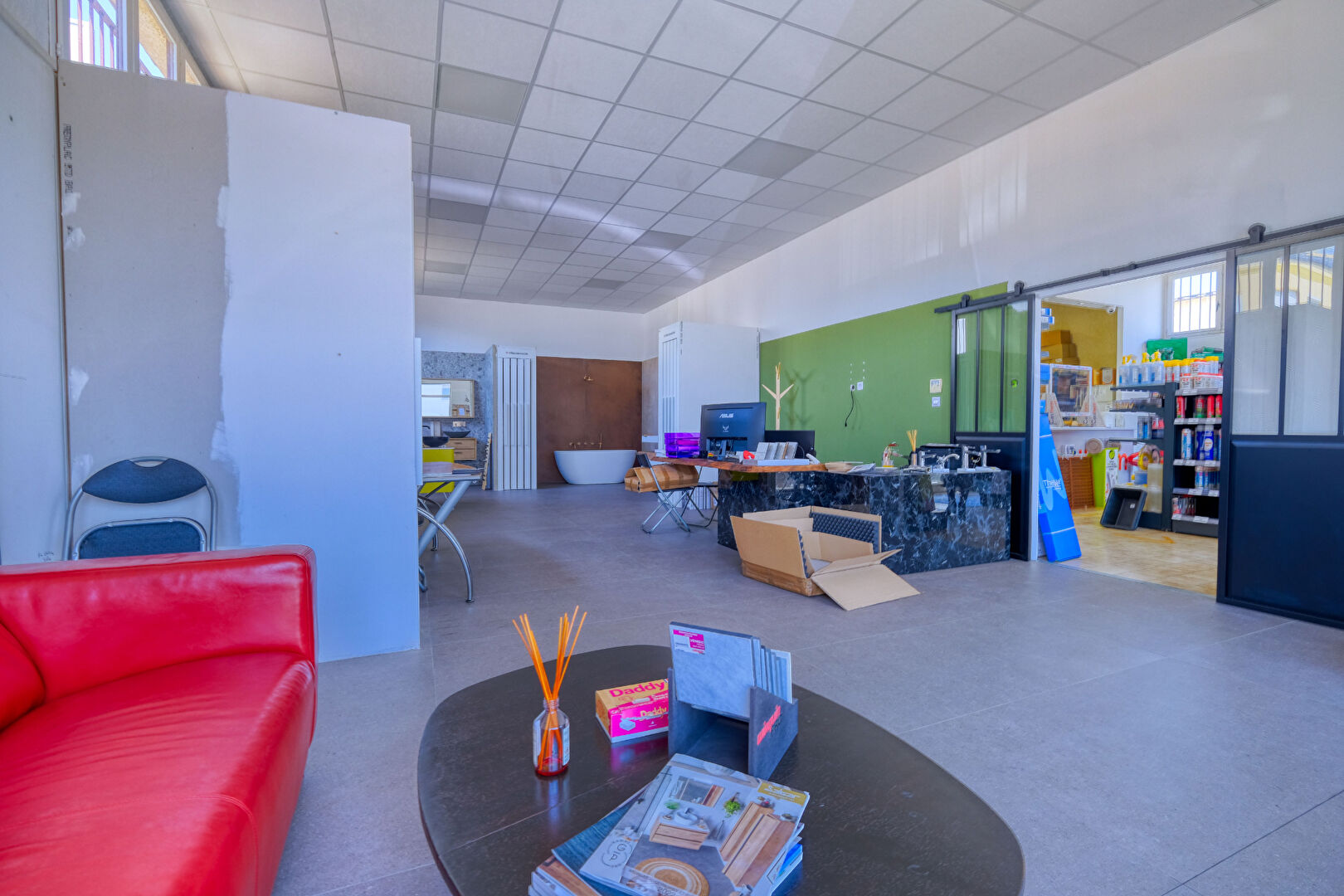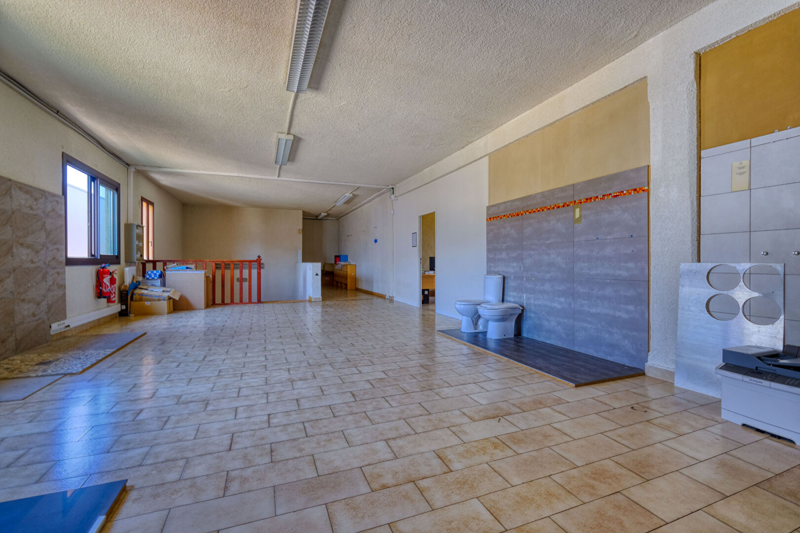 ...Le bâtiment propose au rez-de-chaussée un espace d'accueil avec une zone de stockage de 250 m²...