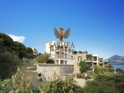 ...Les lignes épurées et les matériaux nobles s'intègrent harmonieusement au paysage...