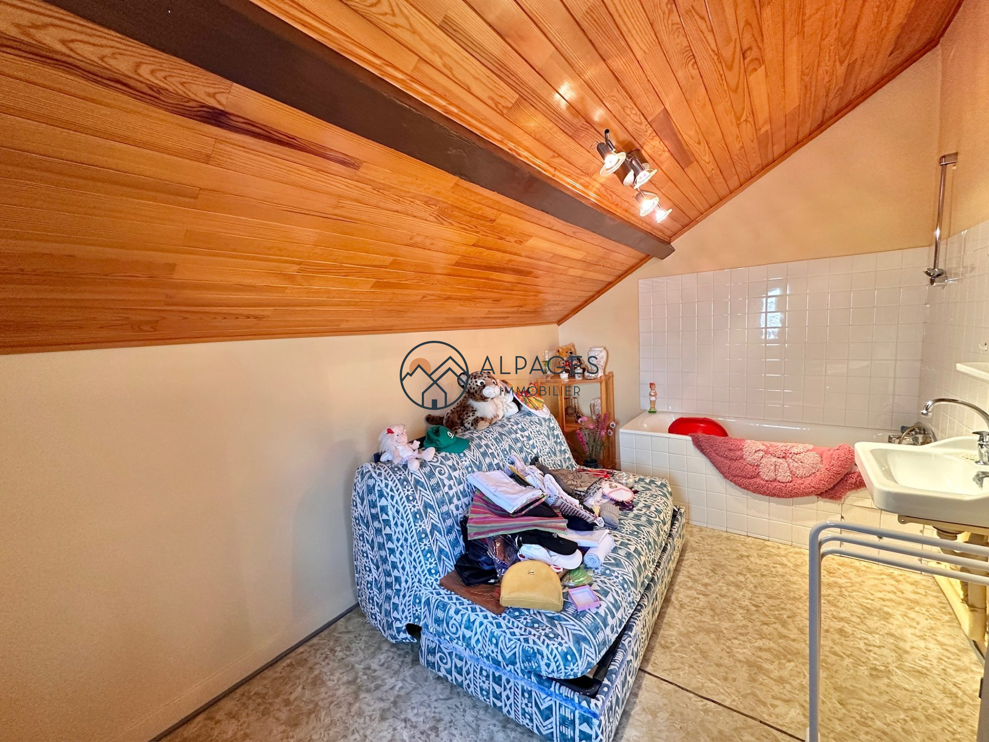 ...A l'étage une grande chambre et une salle de bain...