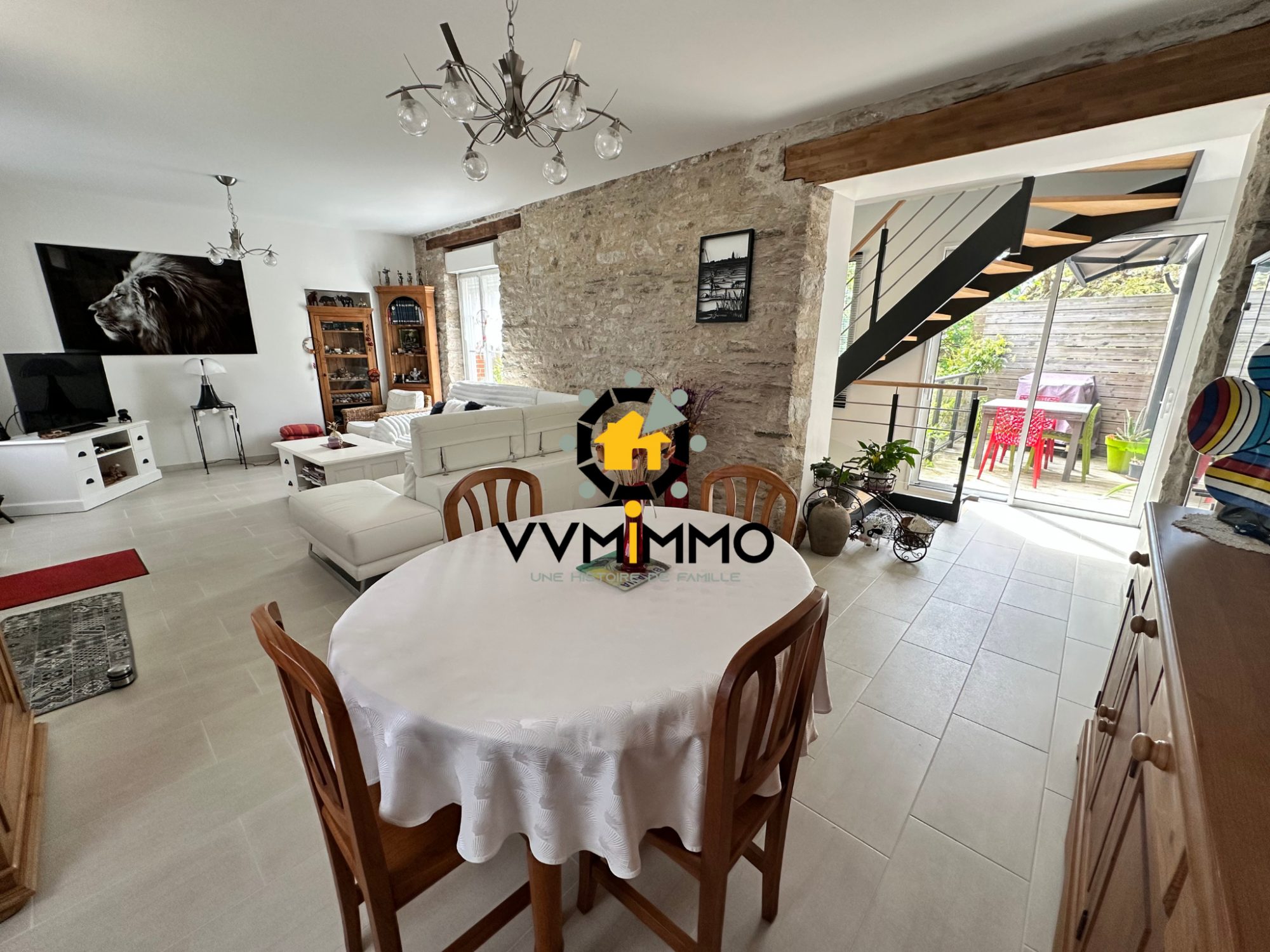 ...Entièrement rénovée, le séjour baigné de lumière offre une belle hauteur sous plafond et est...
