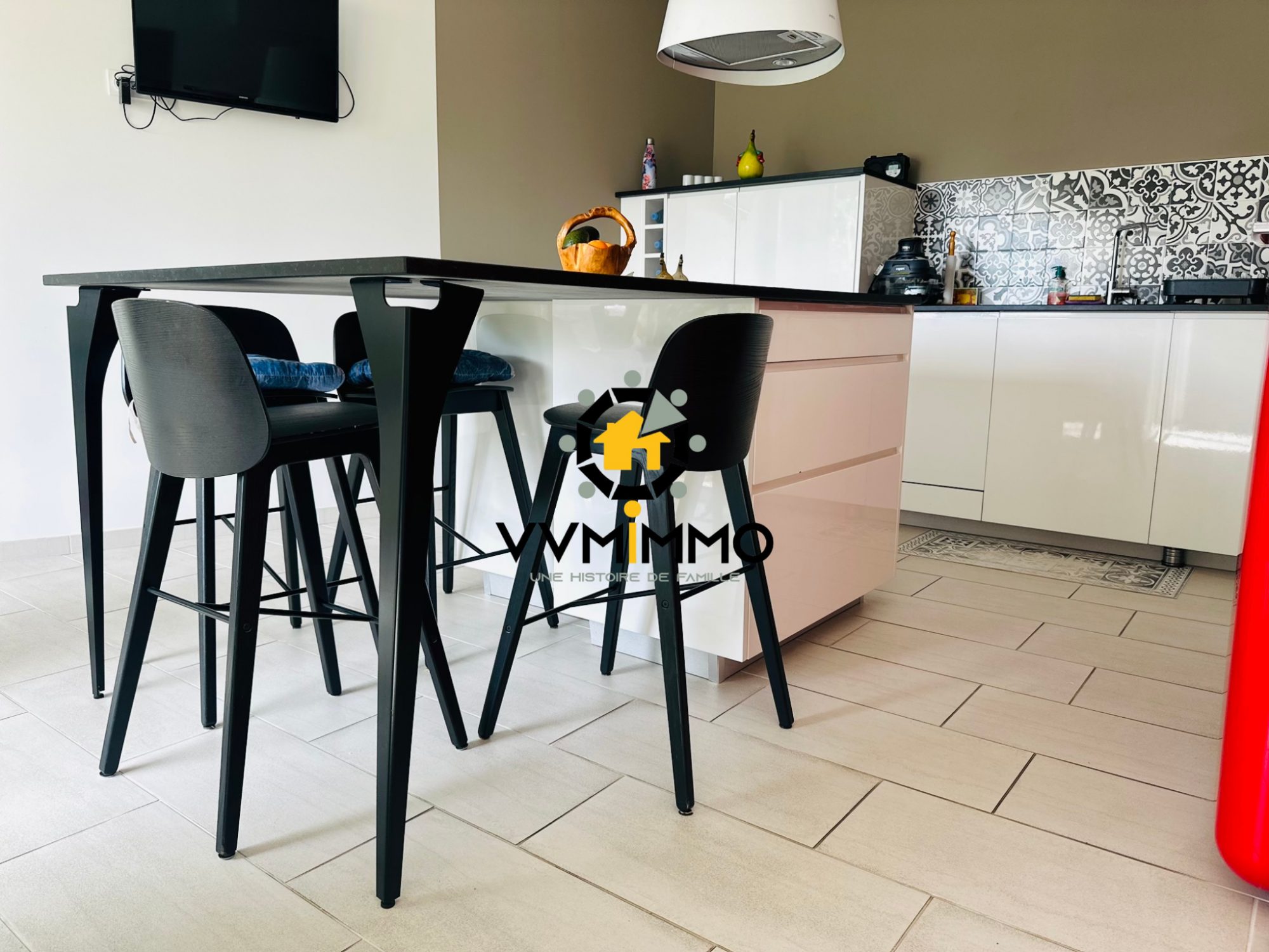 ...La pièce de vie, généreuse et conviviale, s'accompagne d'une cuisine ouverte et se prolonge...
