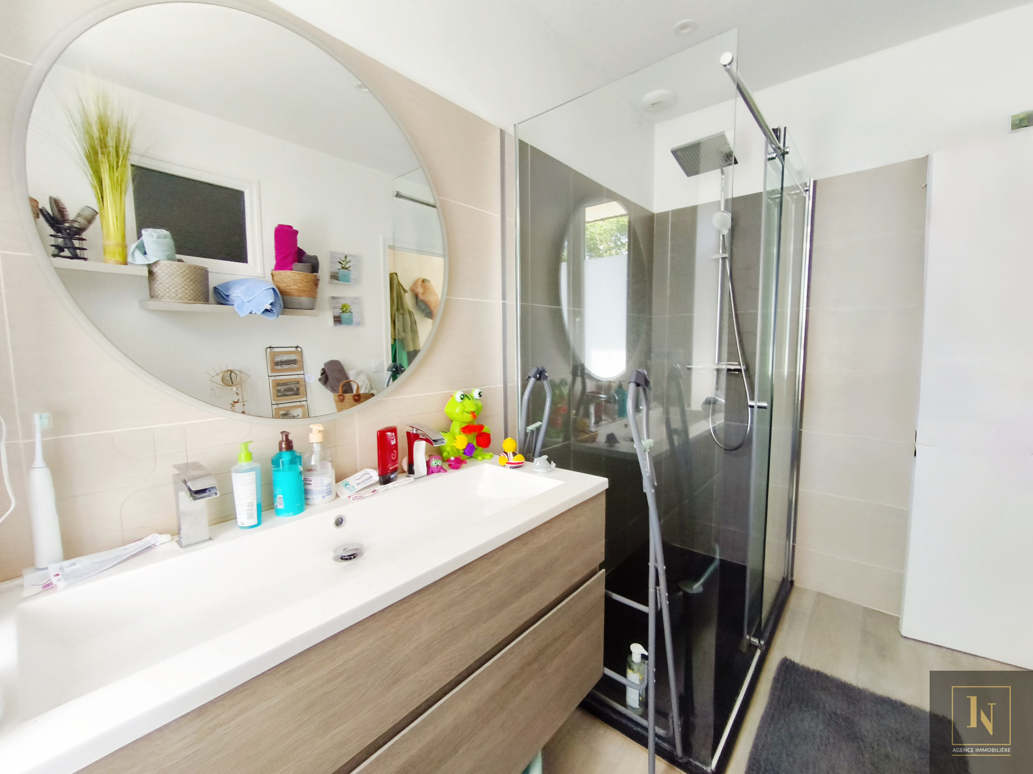 ...Une large entrée mène à l'espace nuit, composé de deux chambres, une salle de bains, ainsi qu'un...
