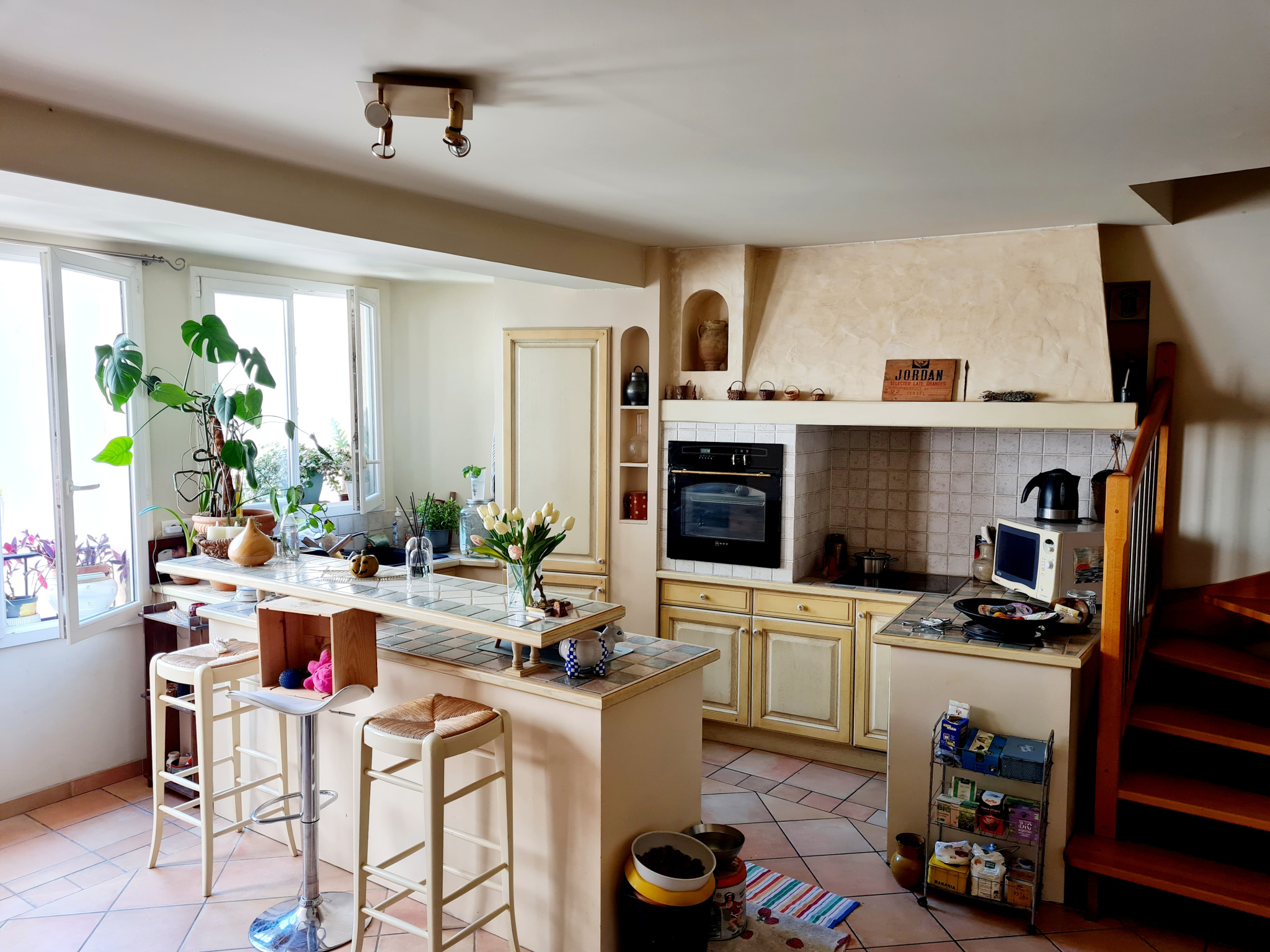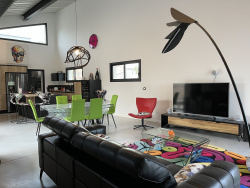 ...Elle offre un bel espace de vie lumineux, chaleureux et moderne, sublimé par une cuisine neuve,...