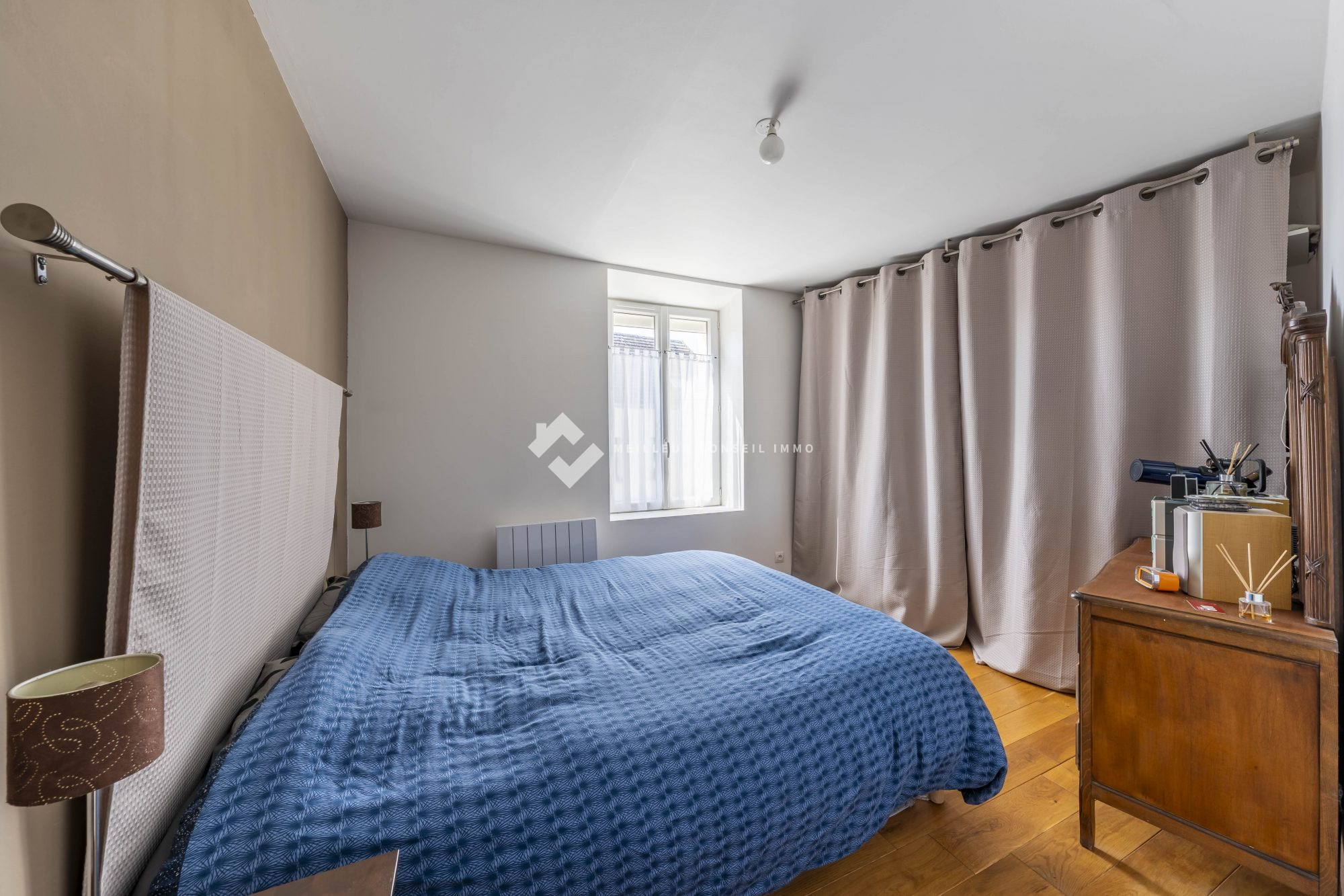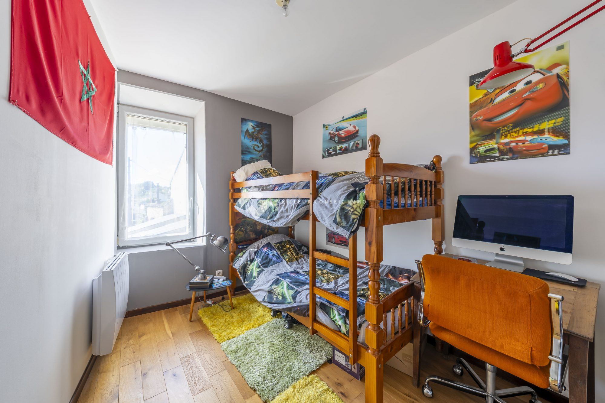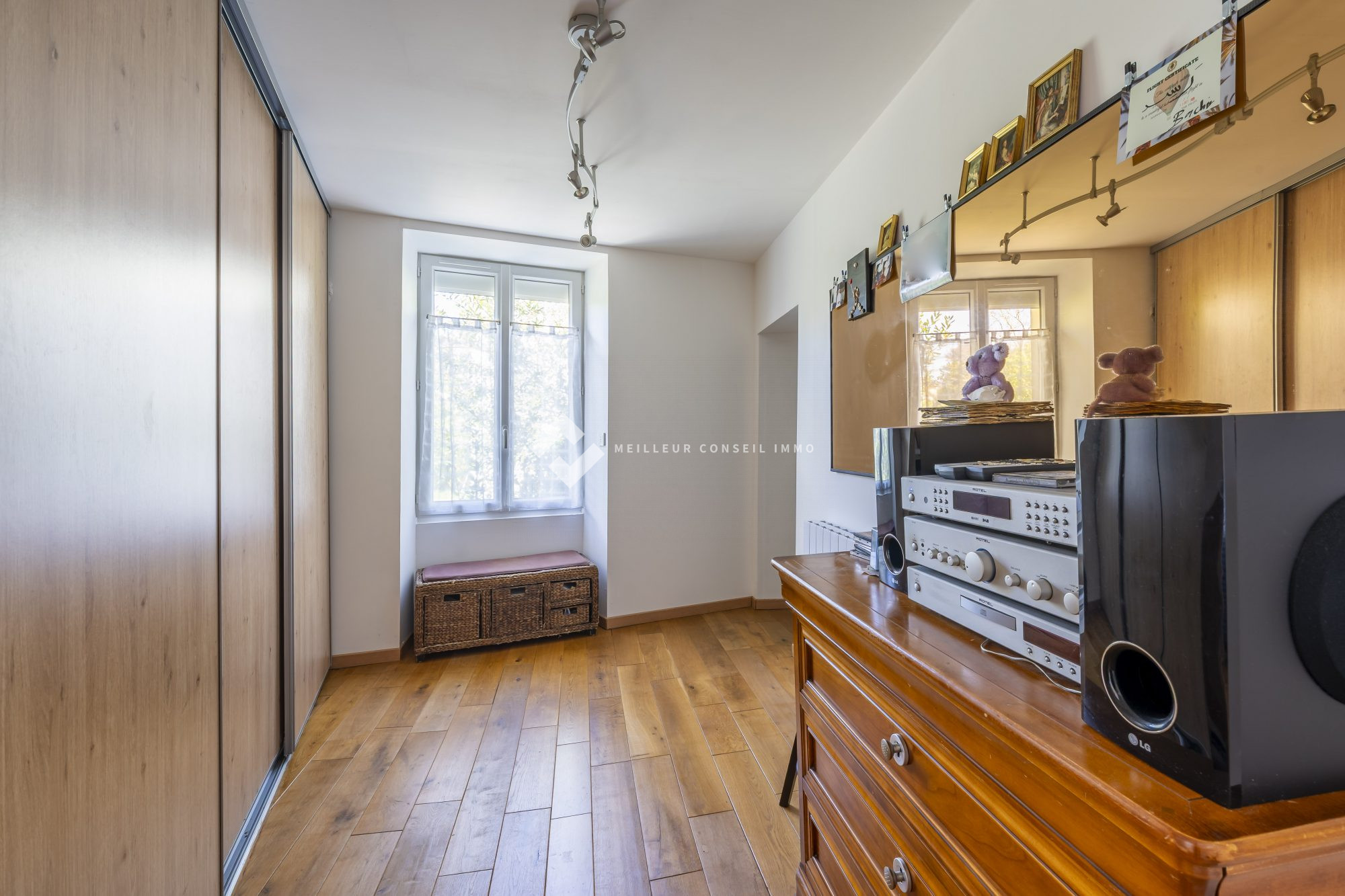 ...Au premier étage, le palier dessert un coin dressing, deux chambres dont une avec placard et une...