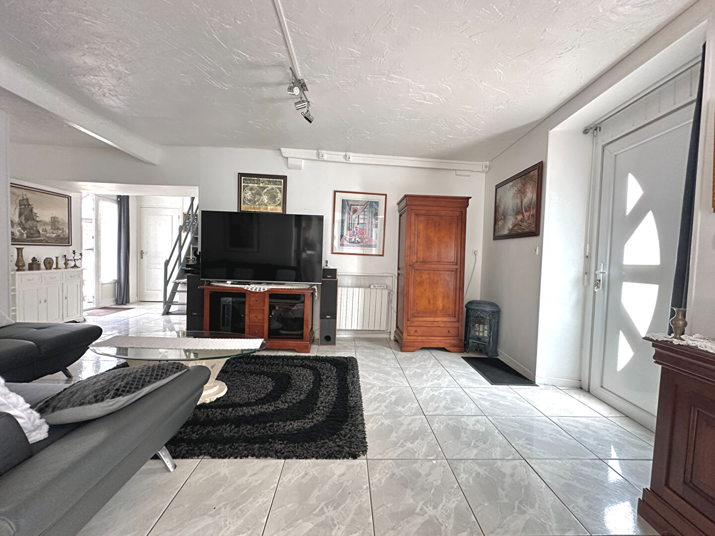 ...Au rez-de-chaussée, l'entrée dessert un beau salon-séjour baigné de lumière, mettant en valeur le...