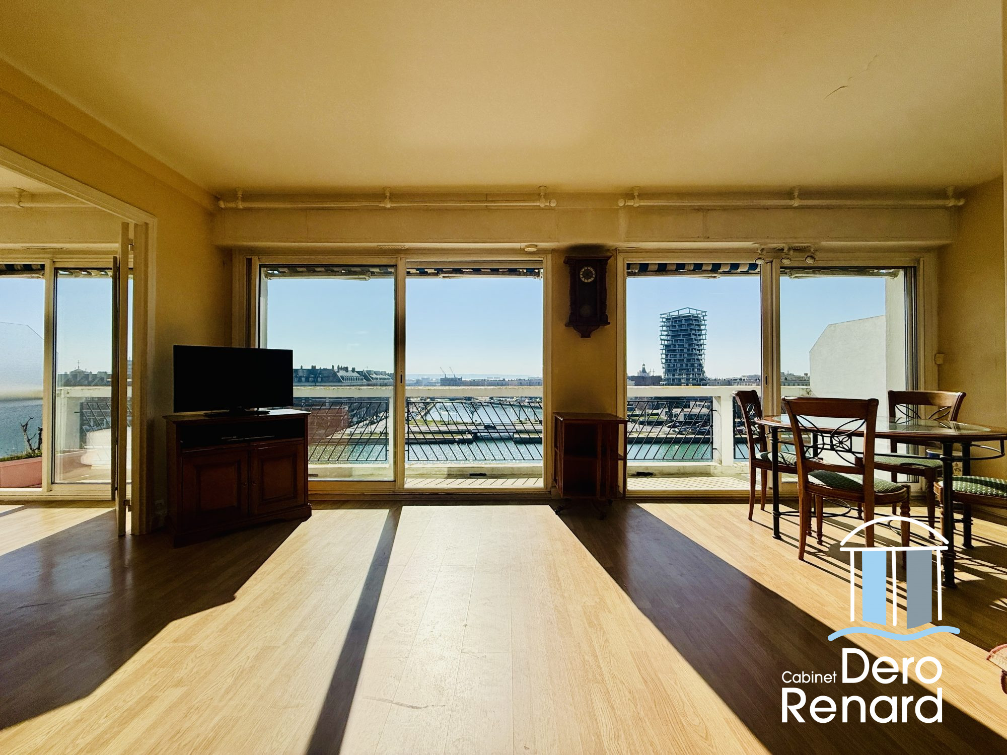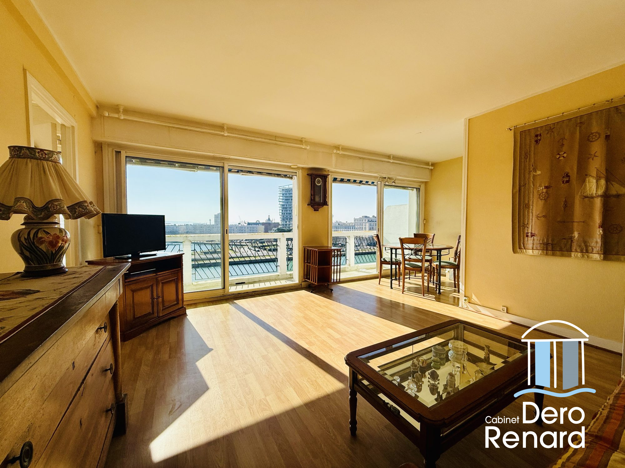 ...Vous trouverez : Entrée salon séjour avec cuisine semi ouverte donnant sur un long balcon,...