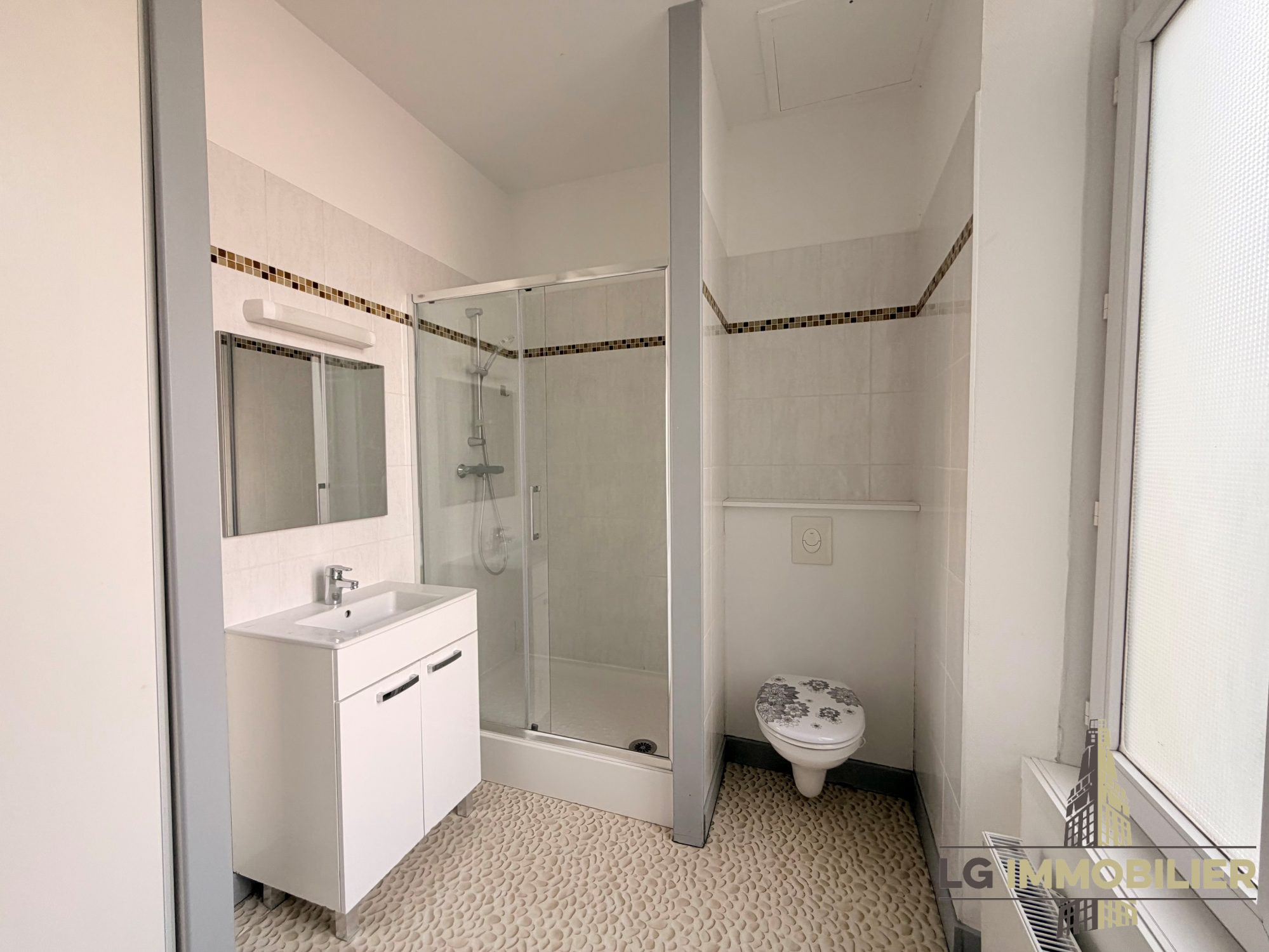 ...81m² comprenant : une entrée, une pièce de vie avec cuisine aménagée, une salle d'eau avec WC...