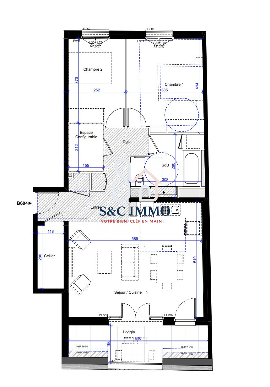 ...Il se compose d'un double séjour lumineux (possibilité de créer une troisième chambre), de deux...