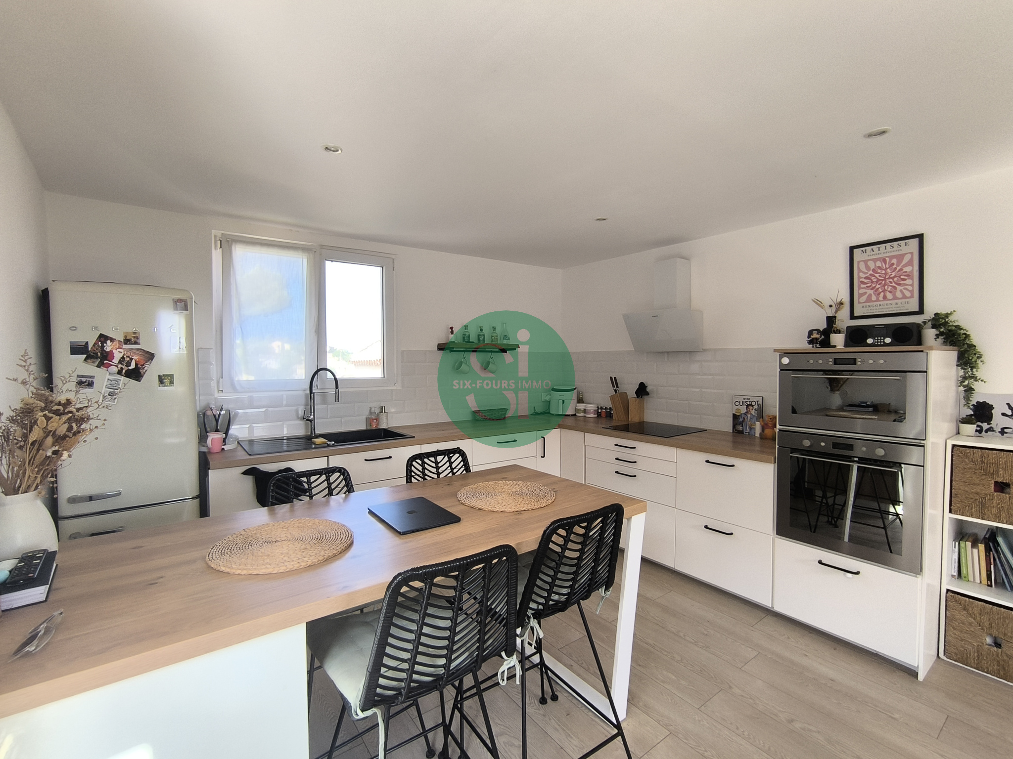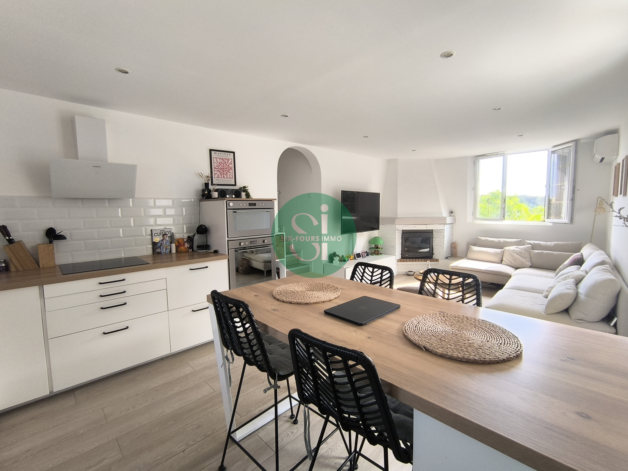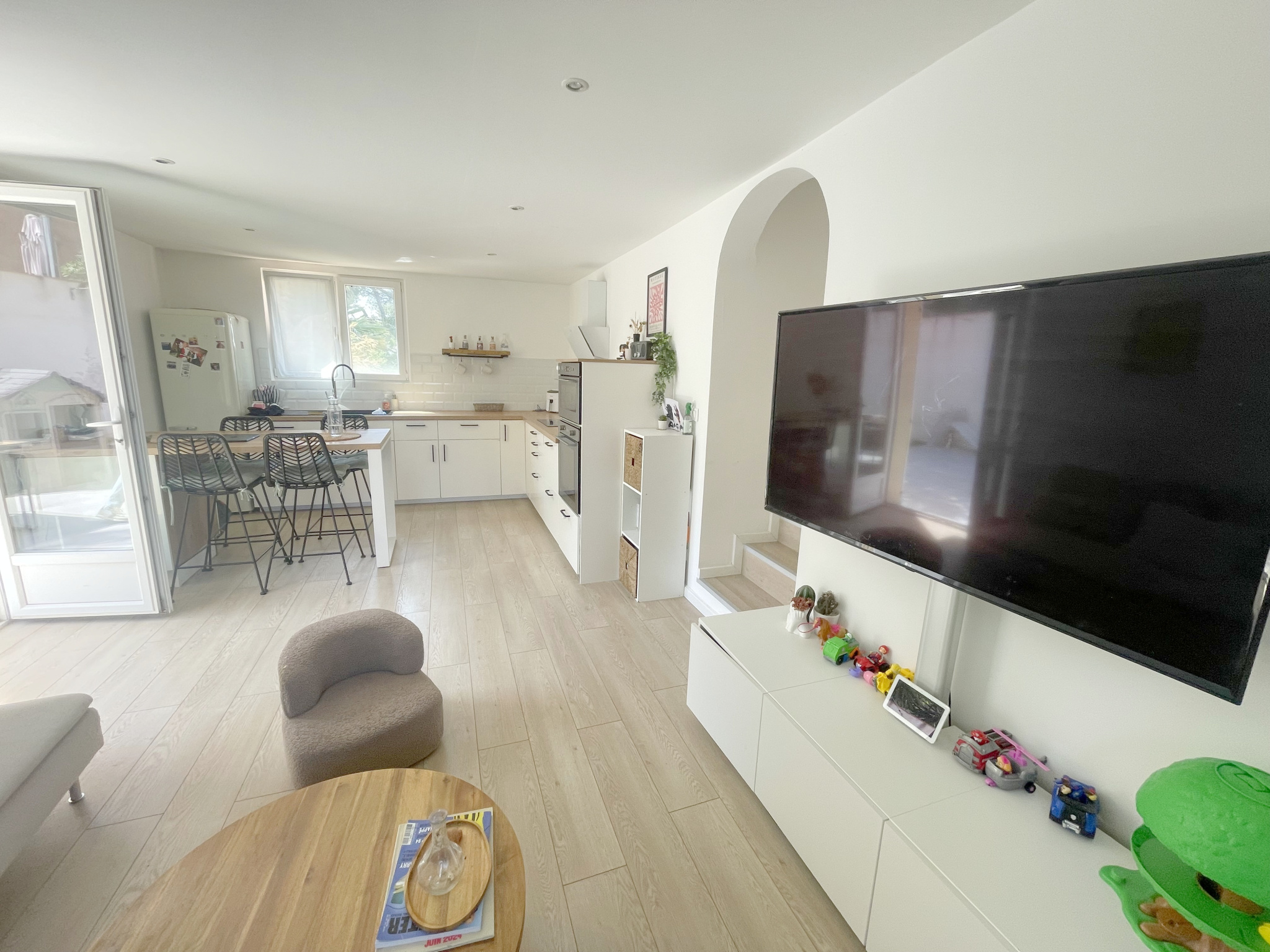 ...Le séjour cuisine de 26 m2 est ouvert sur 2 côtés, et donne sur une terrase de presque 5 m2...