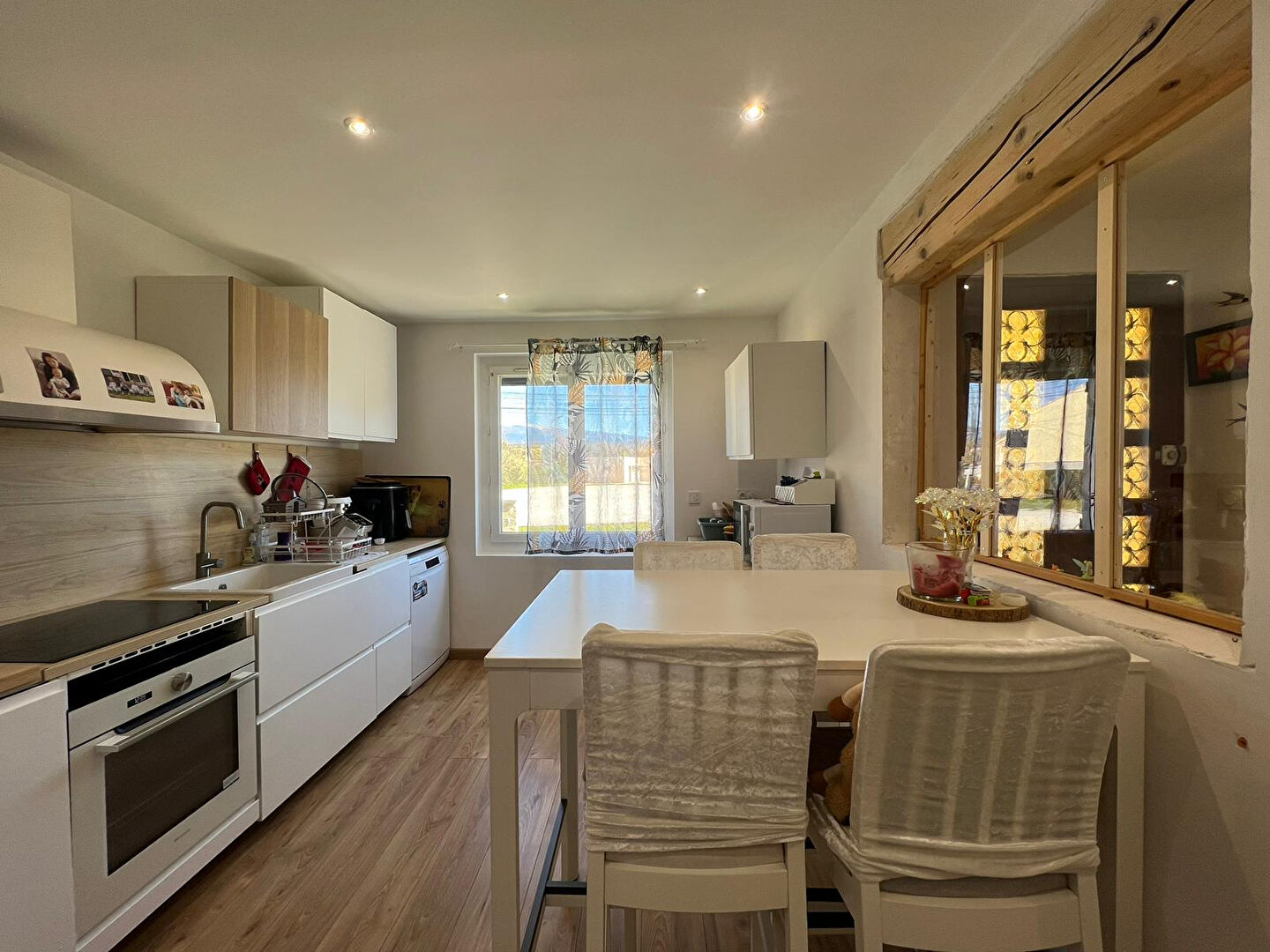 ...De plain-pied, profitez d'une vaste pièce de vie lumineuse ouverte sur une cuisine chaleureuse...