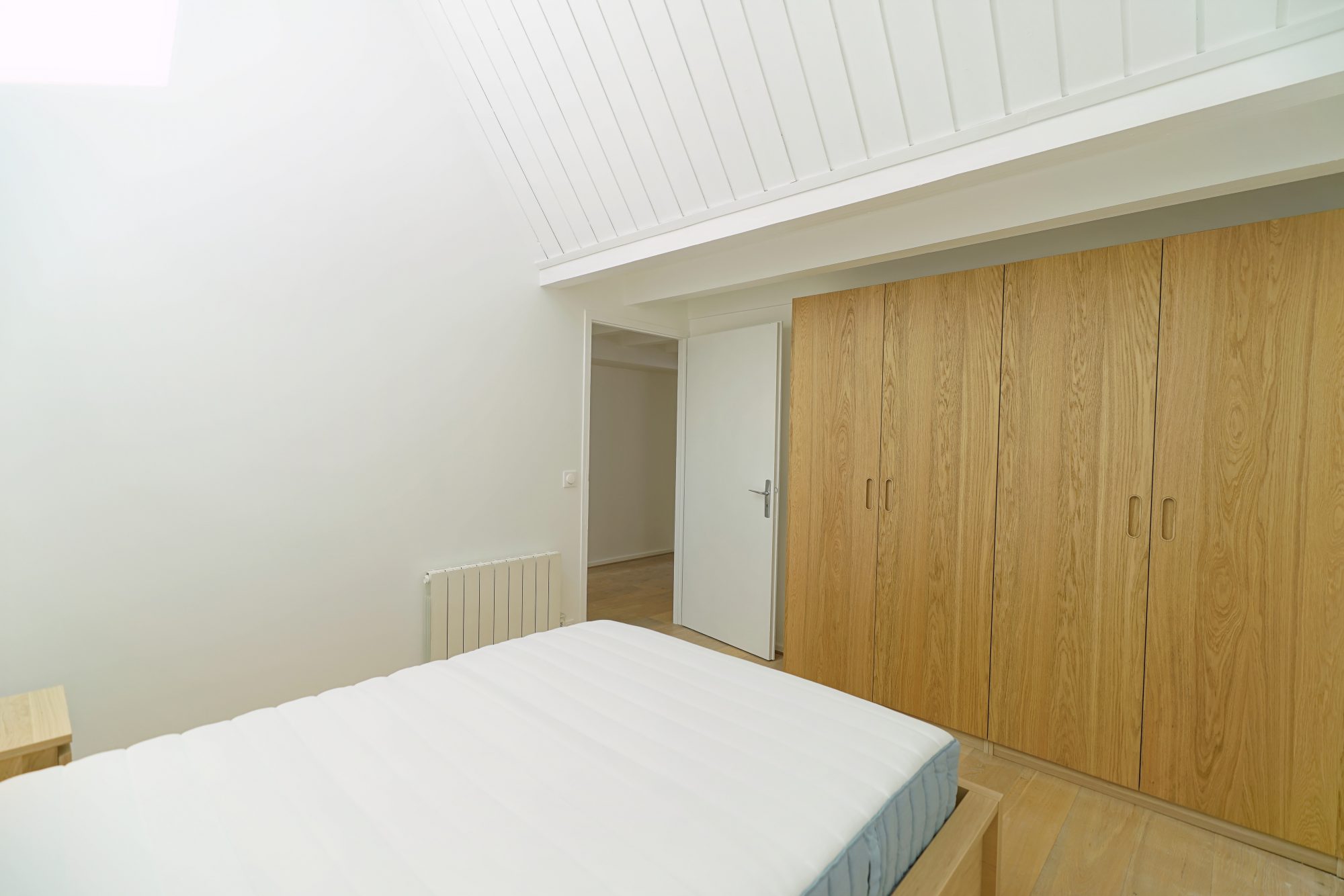 ...Une grande entrée avec rangement dessert la chambre et la salle de douche avec wc...