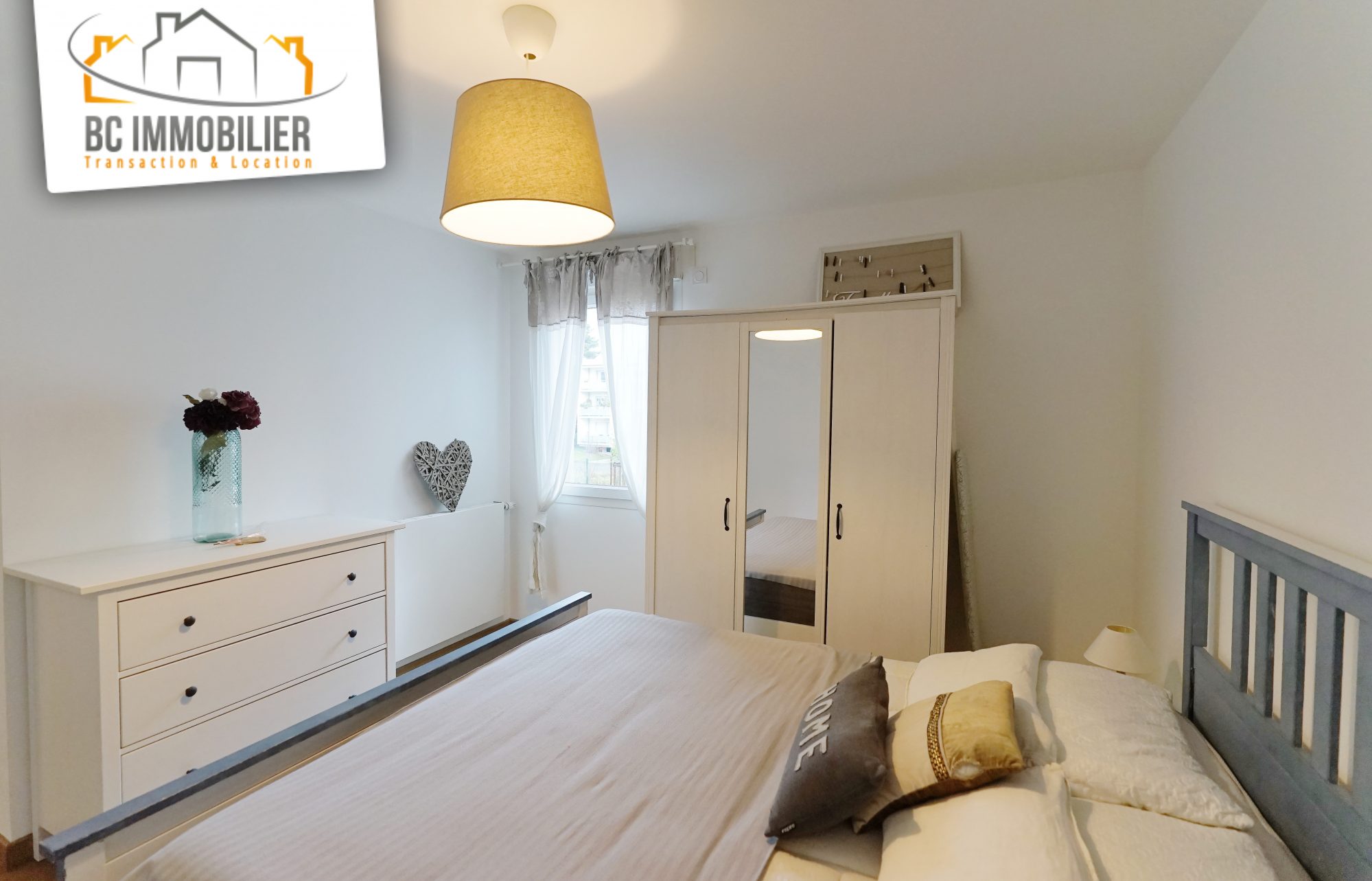 ...La chambre dispose d'un lit double (140 cm), d'un bureau, d'un meuble de rangement, étagères,...