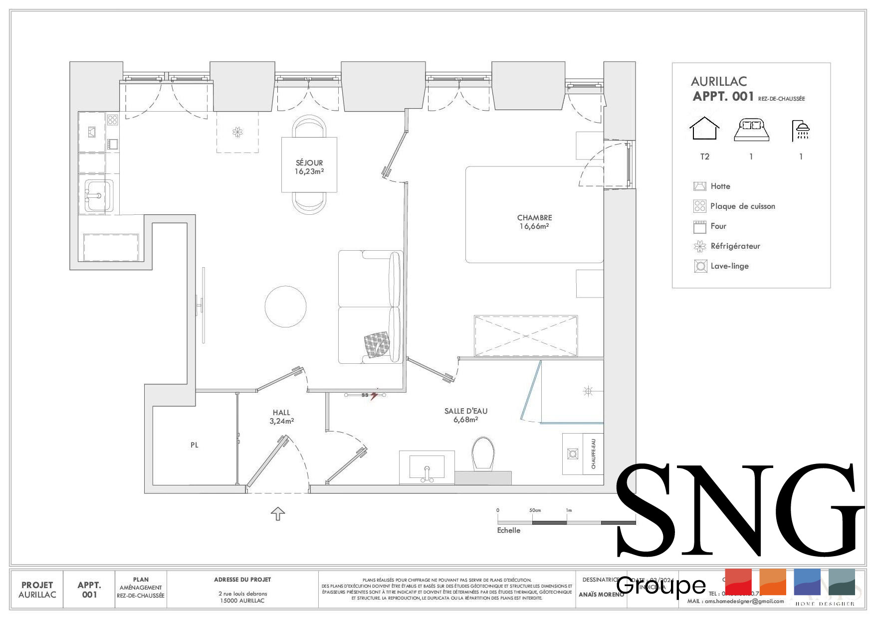 ...Un hall avec placard, un séjour donnant sur une cuisine équipée d'un plan de travail, évier,...