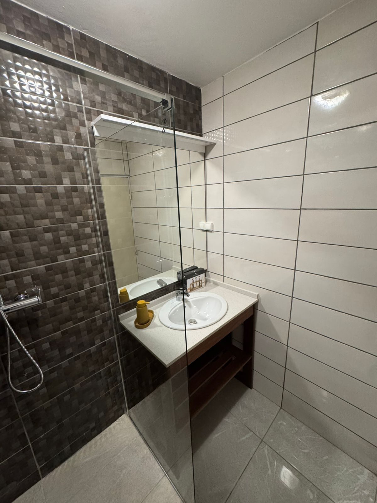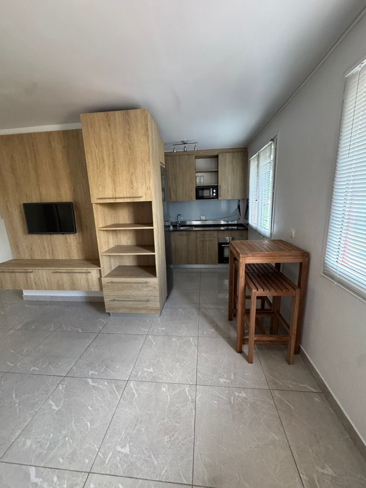 ...Composé d'une pièce principale avec coin cuisine équipée, une salle d'eau avec douche et WC...