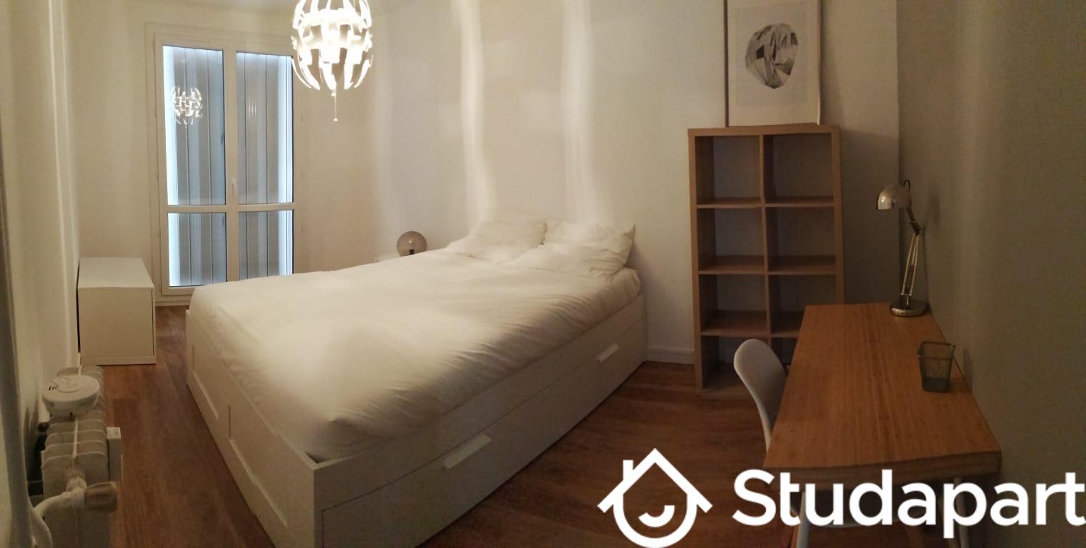 ...- Lit mural double 140 cm - Salle de bain avec douche - Balcon avec vue sur un jardin partagé -...