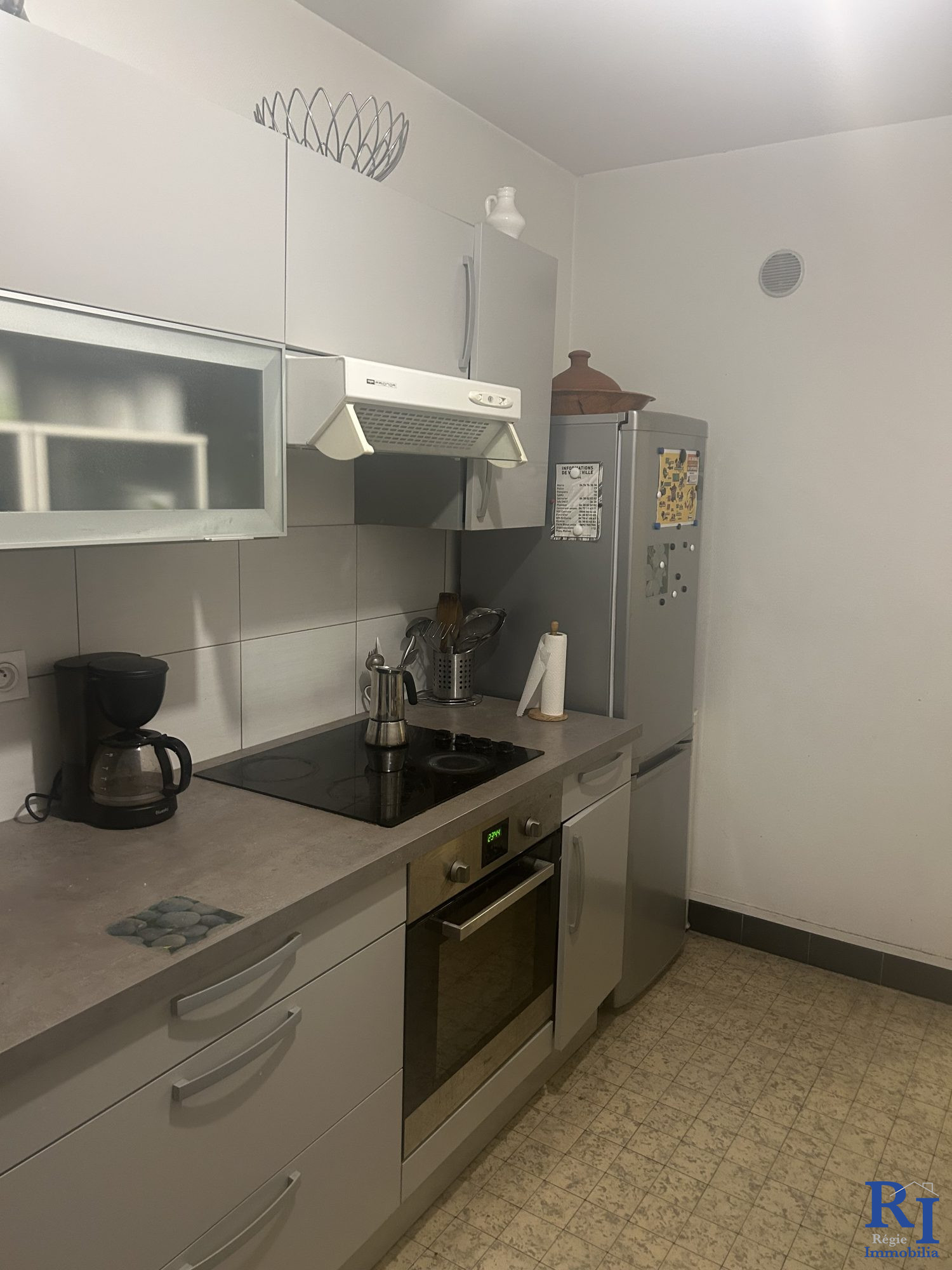 ...Pièce de vie lumineuse avec rangements et balcon, cuisine équipée avec four, chauffage...