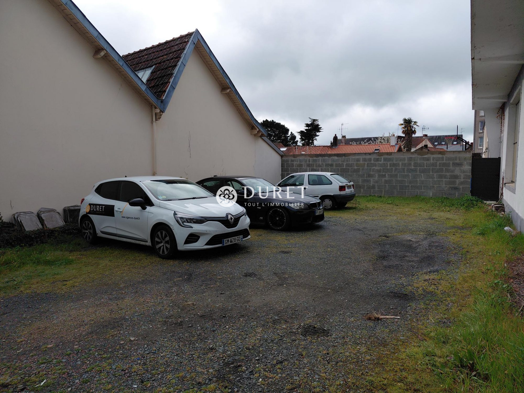 ...Local avec porte sectionnelle et parking en façade avant du bâtiment...