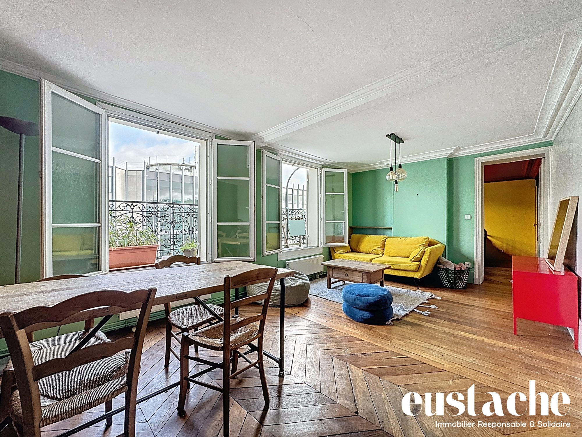 ...Situé au 1er étage d'un bâtiment de 6 étages avec ascenseur, cet appartement allie charme ancien...