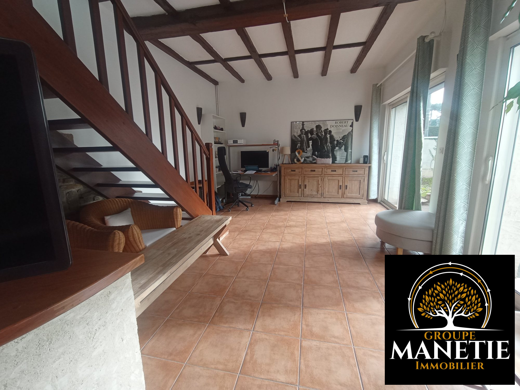 ...Cette maison lumineuse et fonctionnelle se compose ainsi :Un séjour convivial avec mobilier...