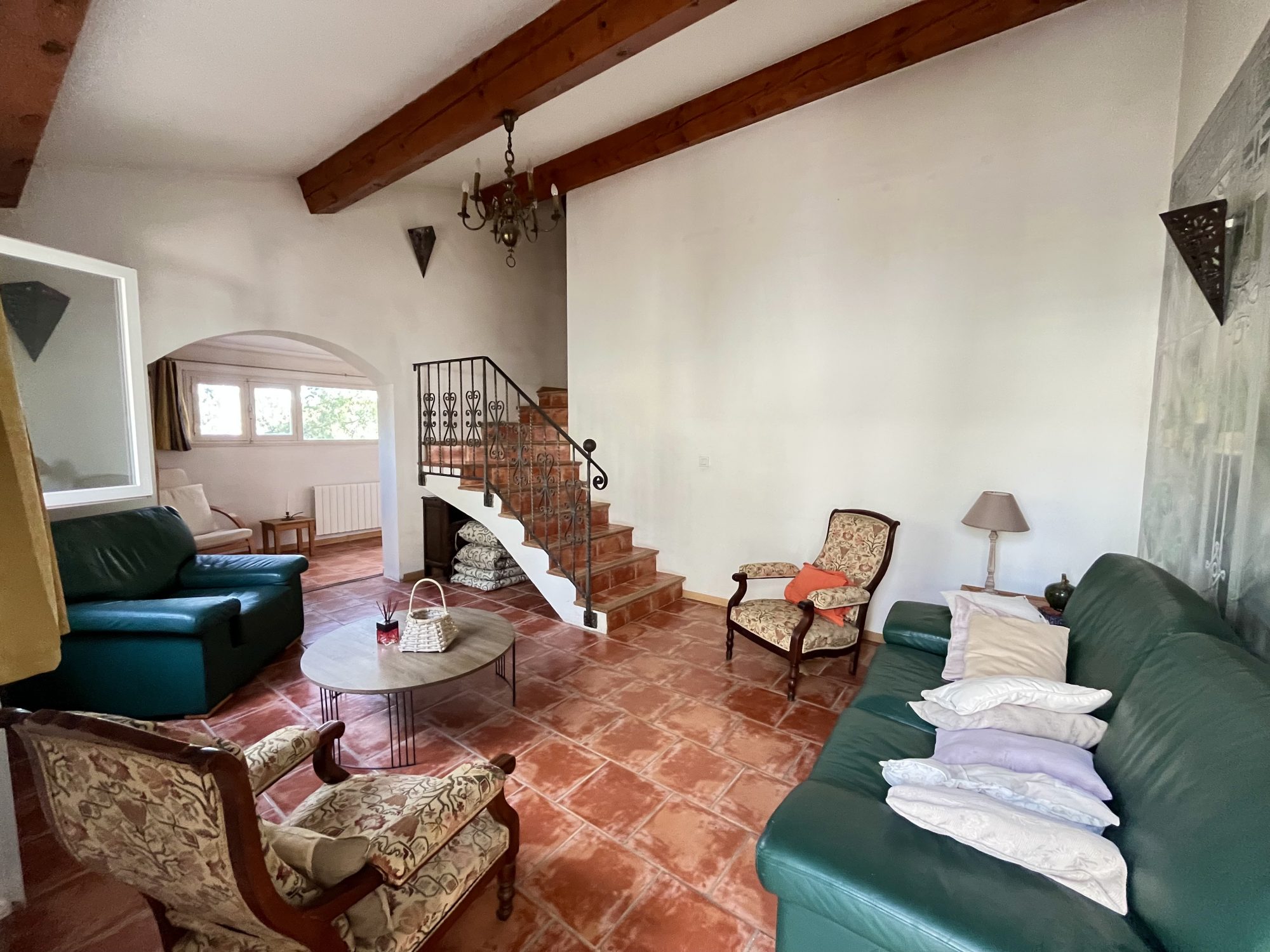 ...Grande pièce de vie ouverte sur cuisine avec comptoir bar, 2 chambres avec placards, une salle...