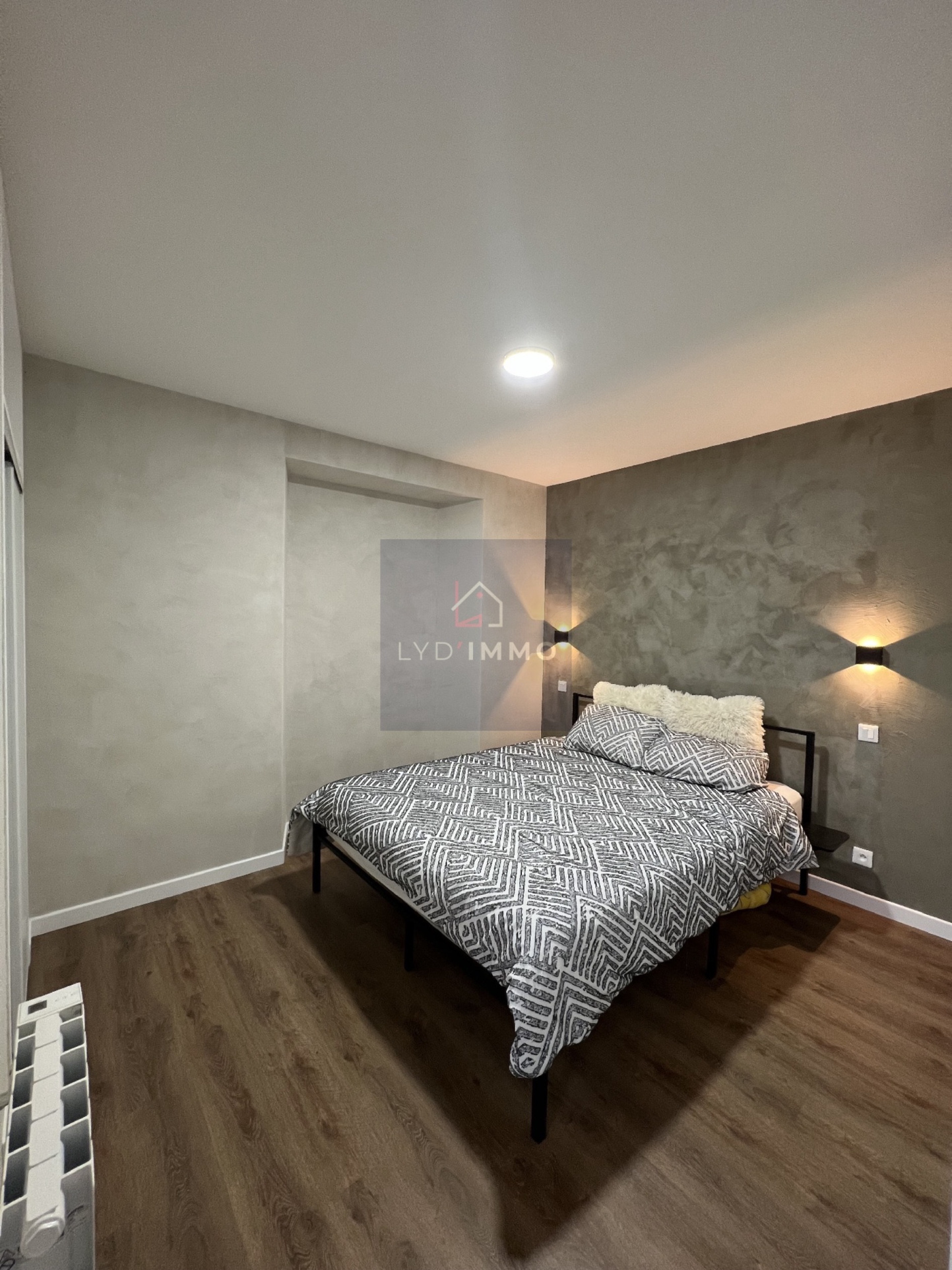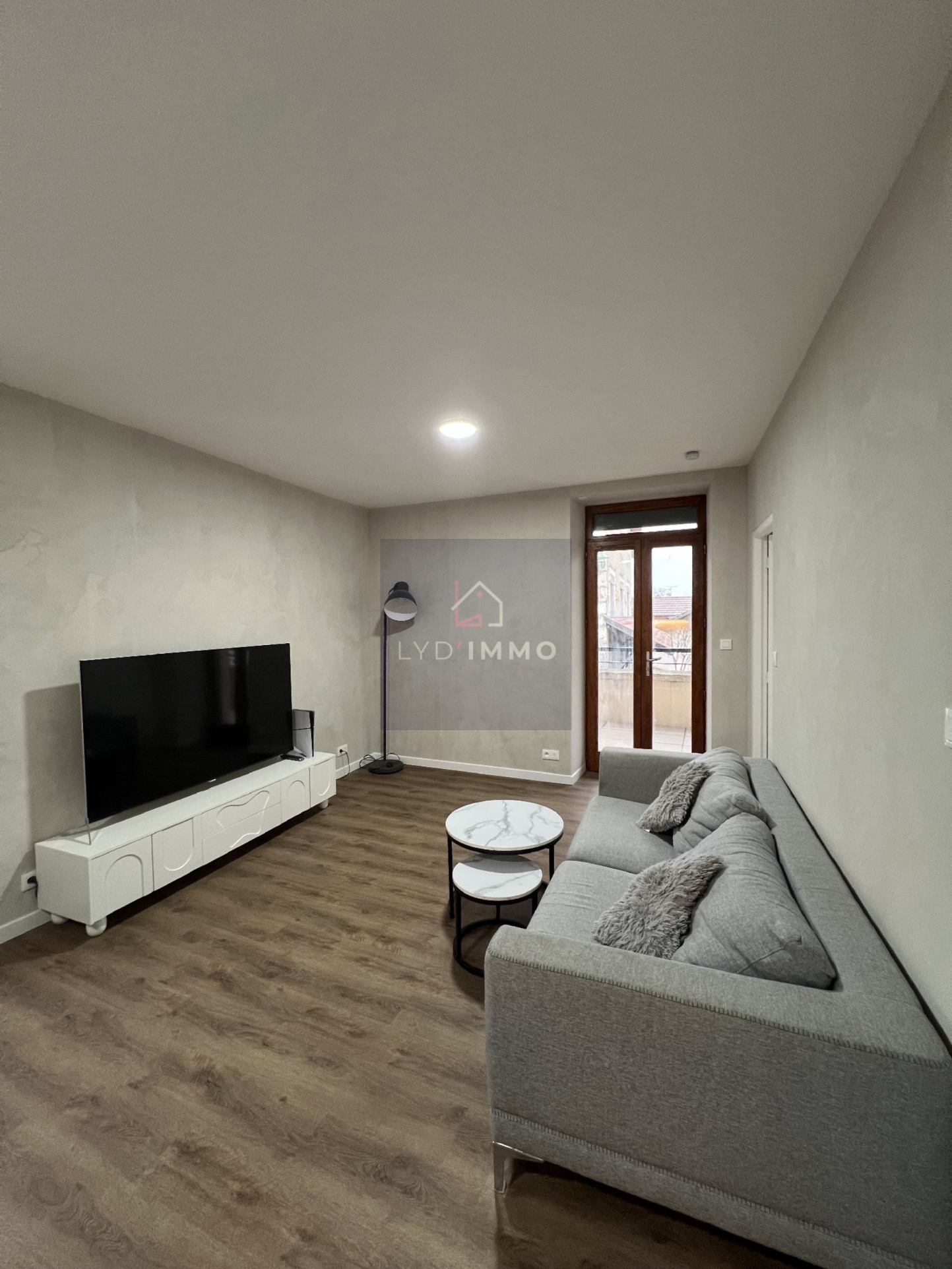 ... avec placard, cuisine équipée, séjour avec balcon, une chambre, salle de bains et wc.
