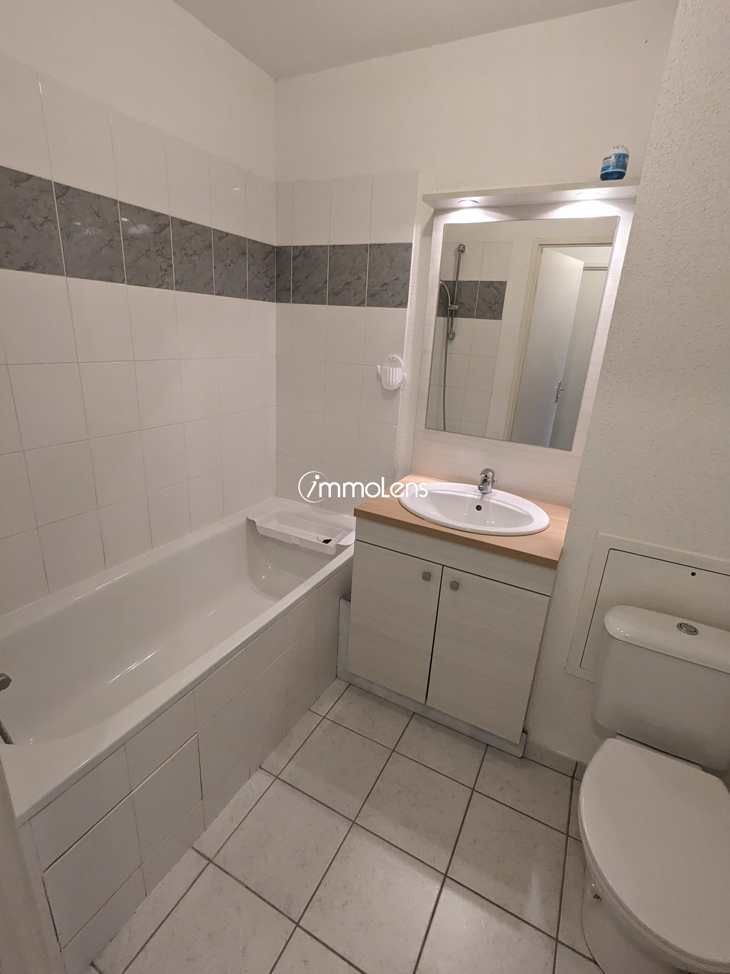 ...Logement offrant une entrée sur Cuisine Séjour ,1 chambre , une Salle de Bain avec WC...