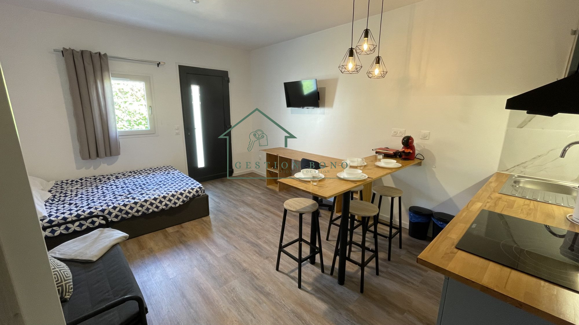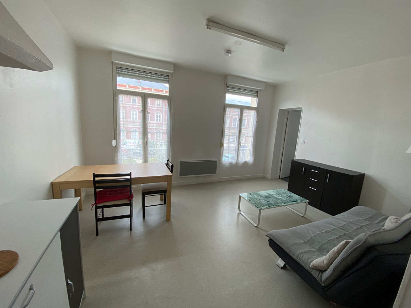 ... centre-ville, studio au premier étage comprenant une cuisine aménagée ouverte sur pièce principale ...