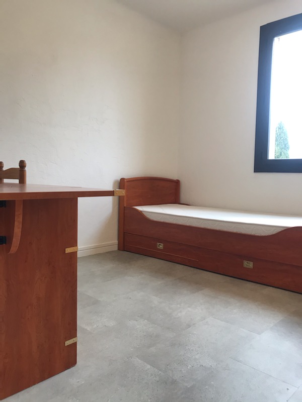 ...Trois chambres dont une chambre (avec porte) ou salon, porte-fenêtre donnant sur jardin...