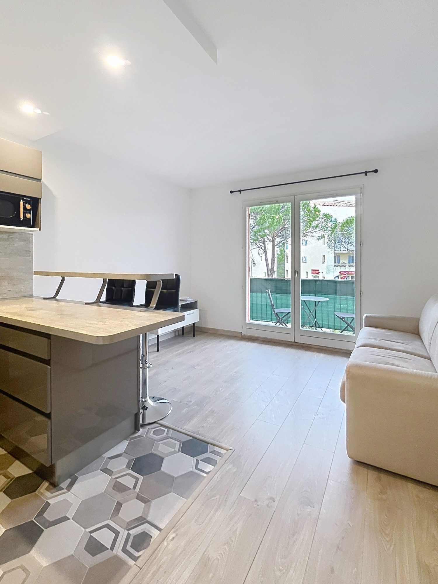 ...2 pièces traversant , avant dernier étage, exposition principale PLEIN SUD, vue mer et parc...