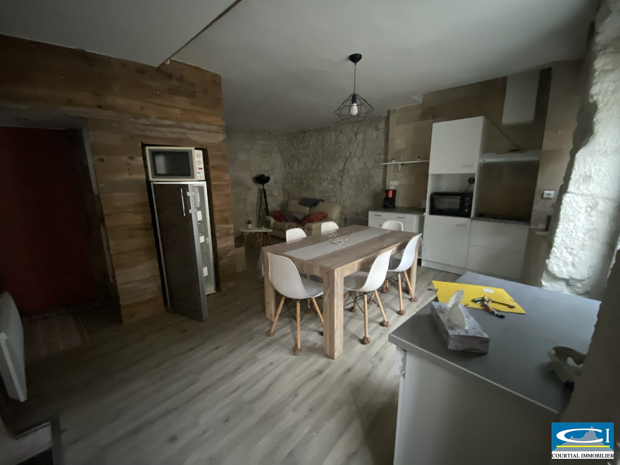...T2 comprenant espace de vie avec cuisine entièrement équipée, 1 chambre, 1 SDE avec WC + coin...