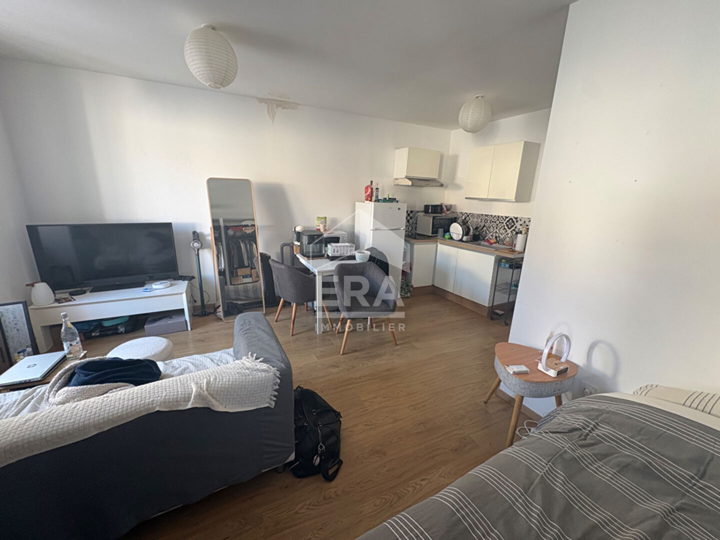 ... entrée avec placard, salle d'eau avec douche à l'italienne, coin nuit avec lit de 2 places, salon, ...