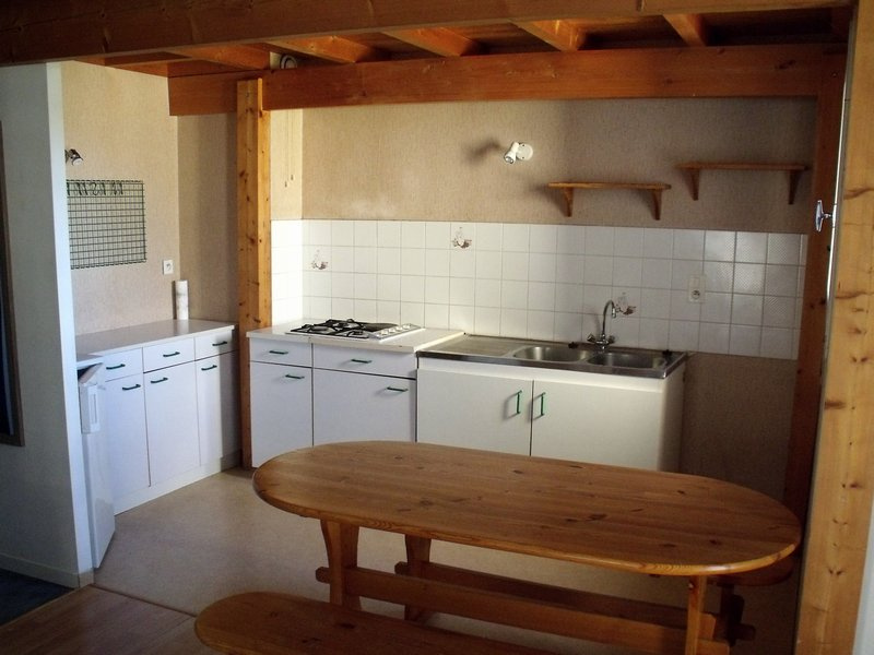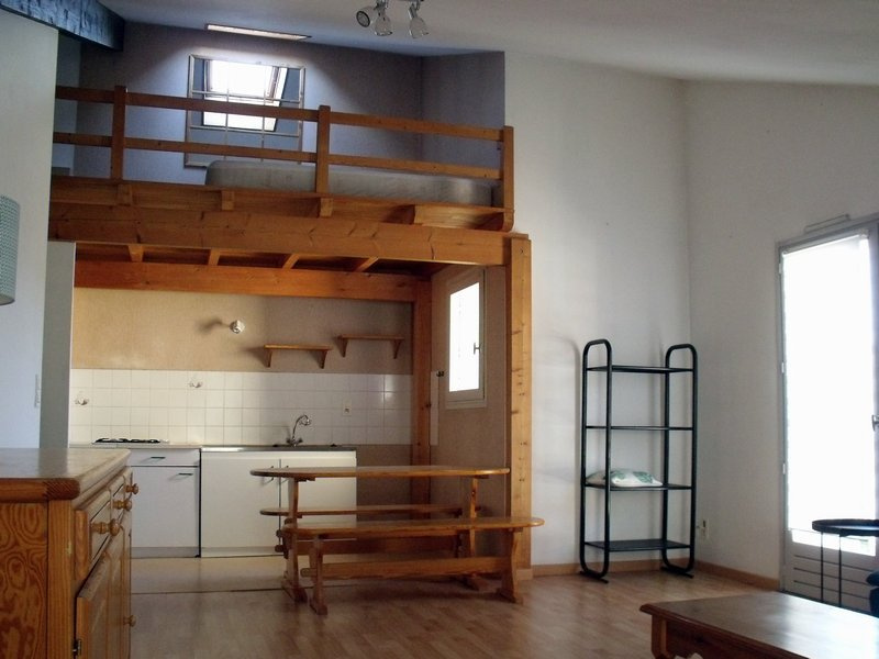 ...40 m2 habitables, salon-séjour avec coin cuisine semi-équipée (plaque induction, four et hotte)...