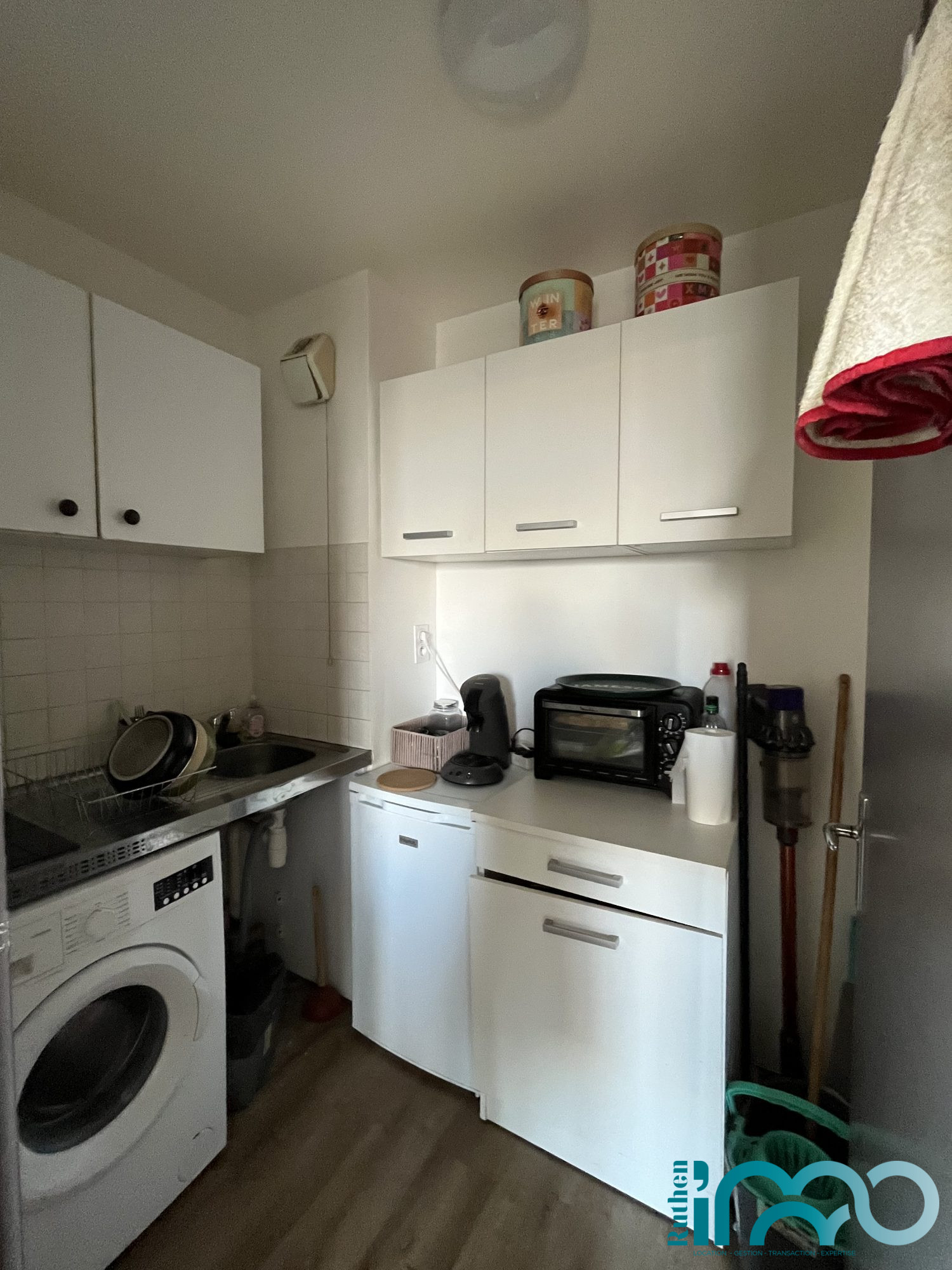 ...Appartement composé d'une entrée, une pièce principale avec un coin cuisine équipé de placards,...