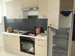 ... qui comporte une plaque électrique et un frigidaire Une salle d'eau comprenant douche et WC Un balc...