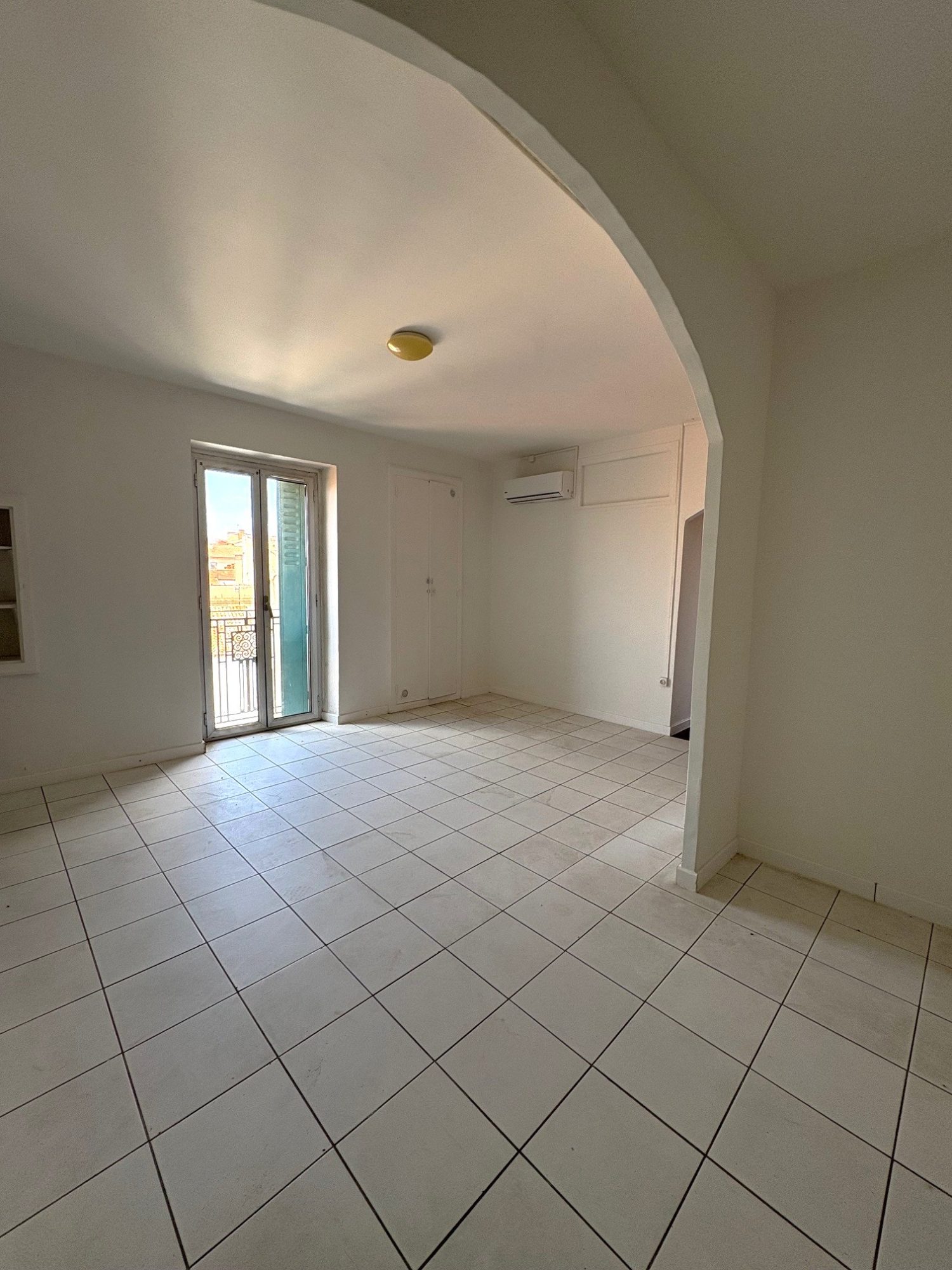 ...Il comprend un salon avec cuisine ouverte et équipée , une grande chambre donnant sur la place,...