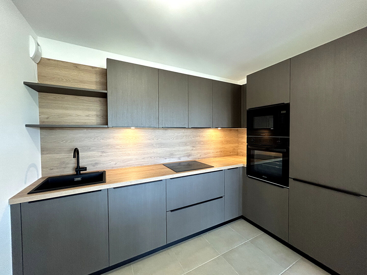 ...Il se compose d'une entrée avec un placard, d'un grand salon/séjour avec cuisine ouverte, donnant...