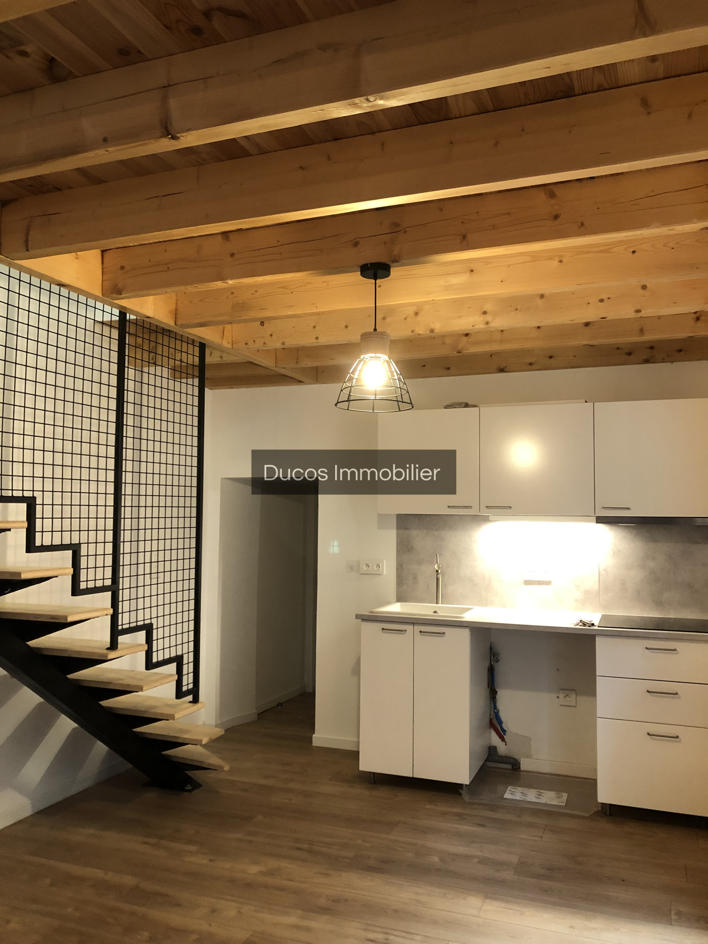 ... comprenant une cuisine équipée ouverte sur un salon, une chambre, une salle d'eau avec wc, en étag...