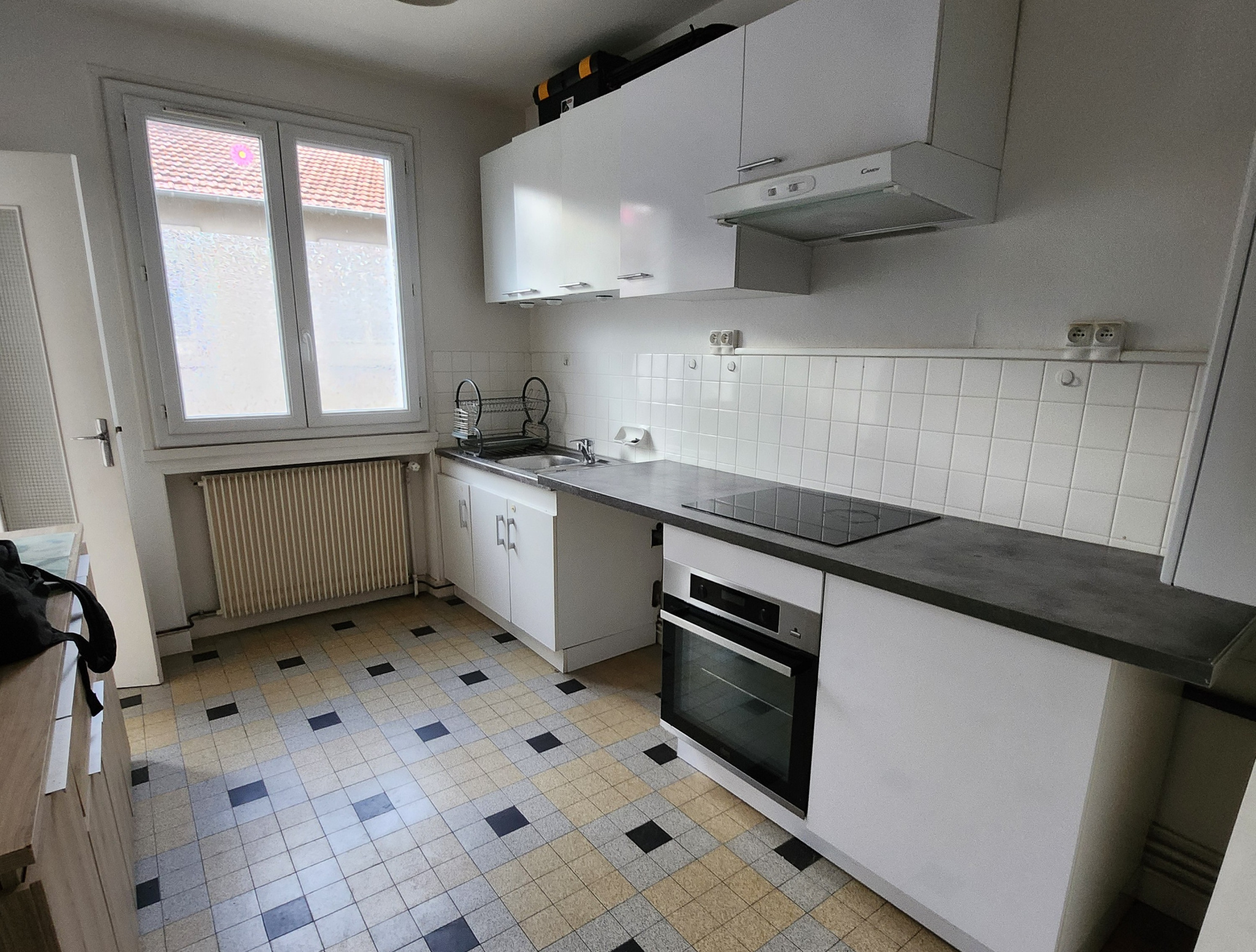 ...Appartement refait à neuf qui se compose d'une entrée, donnant à gauche sur la cuisine qui...