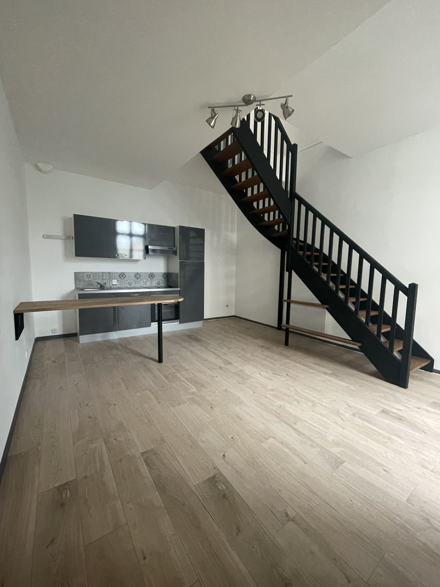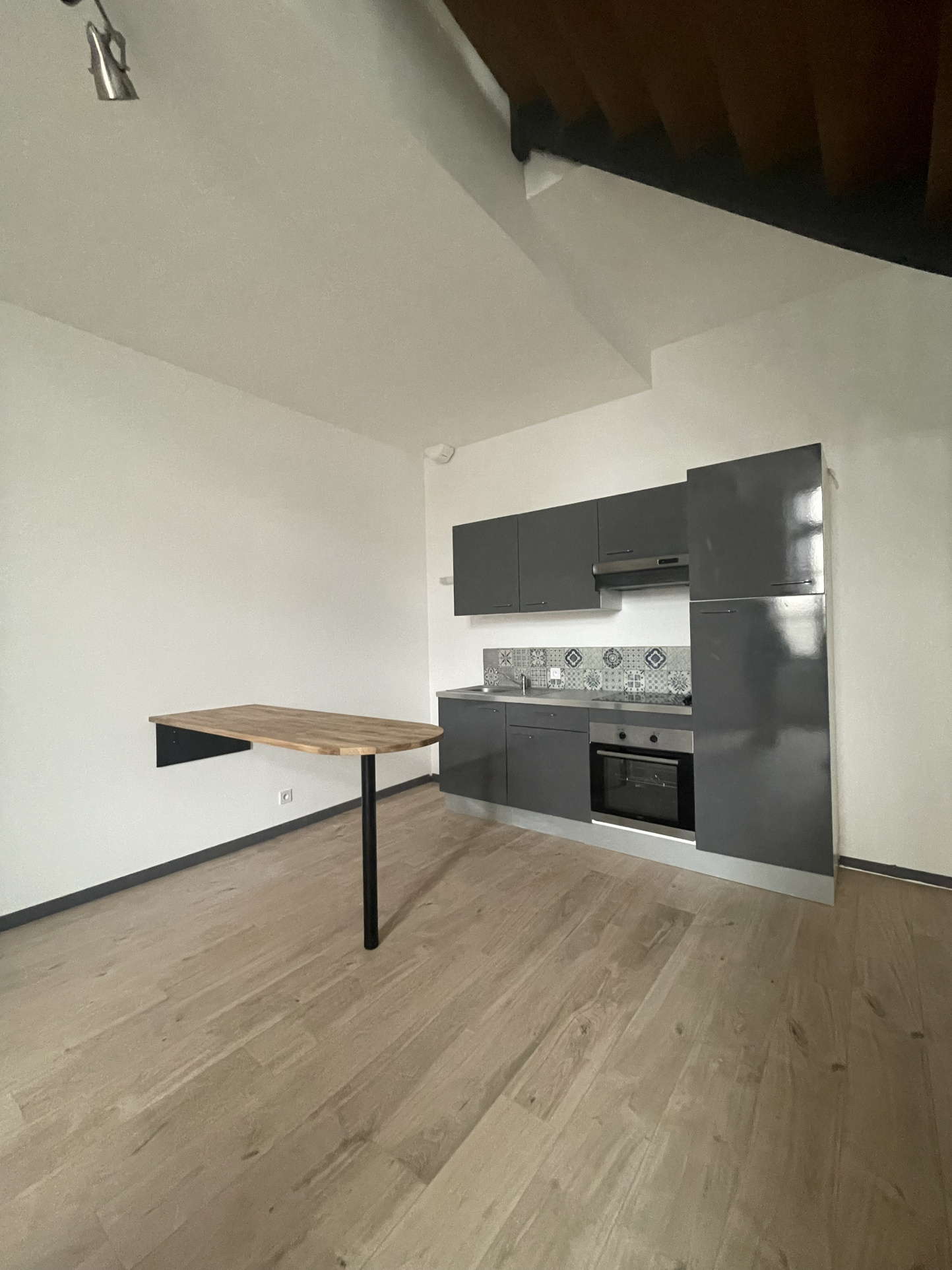 ...Kitchenette semi équipée (plaque, hotte, frigo), salle d'eau, WC...