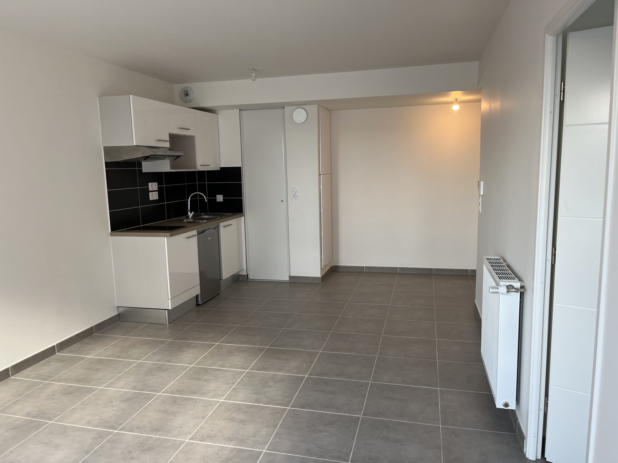 ...Une entrée avec placard, séjour, une cuisine aménagée, une chambre, une salle de bains, un wc...