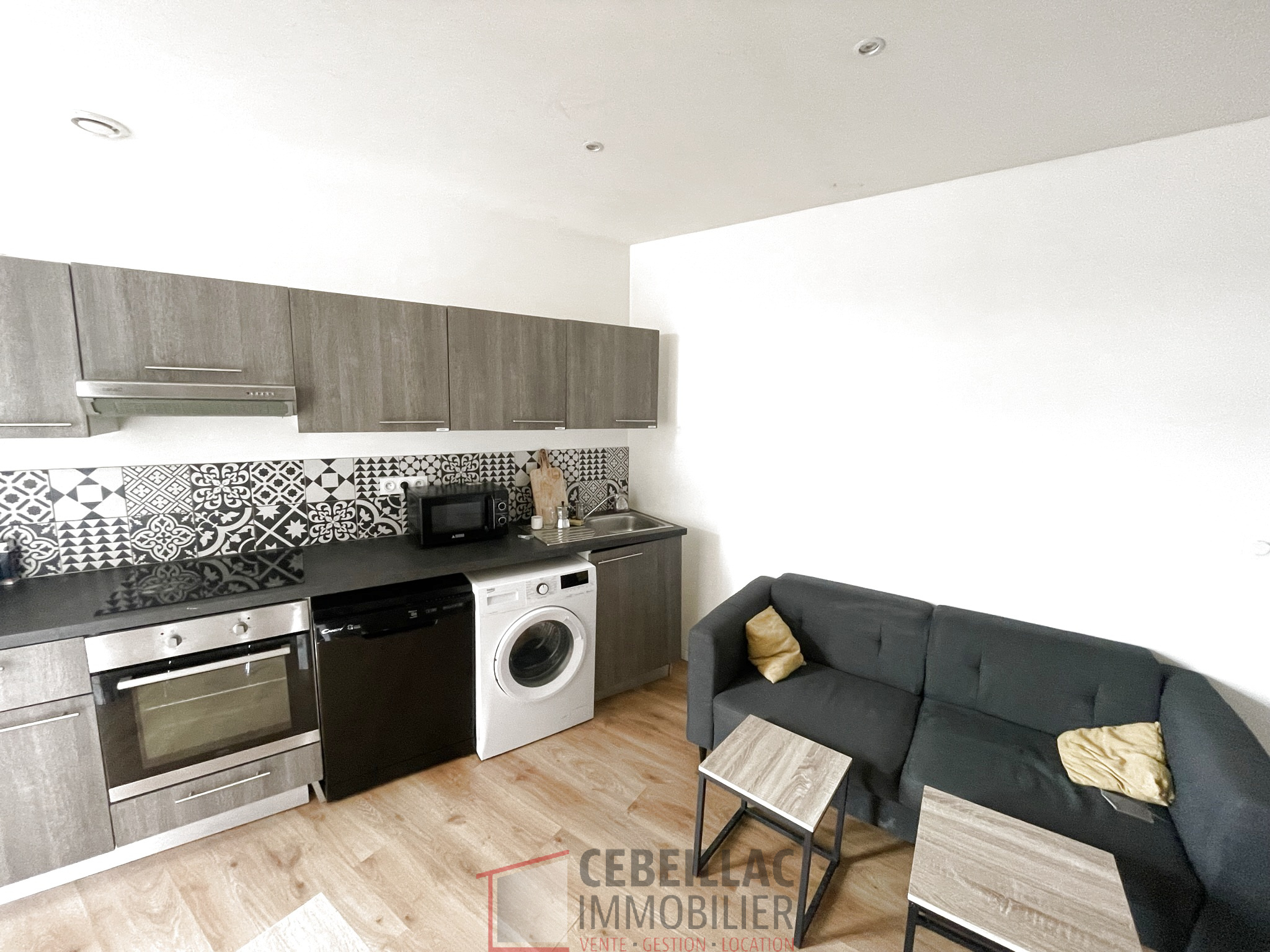 ... d'une cuisine moderne équipée et aménagée (réfrigérateur, plaques, four, hotte), d'une belle chambr...