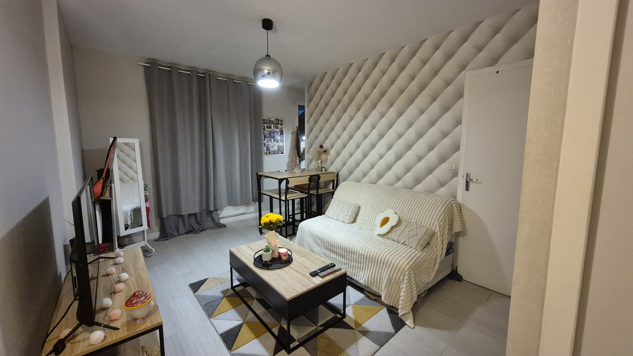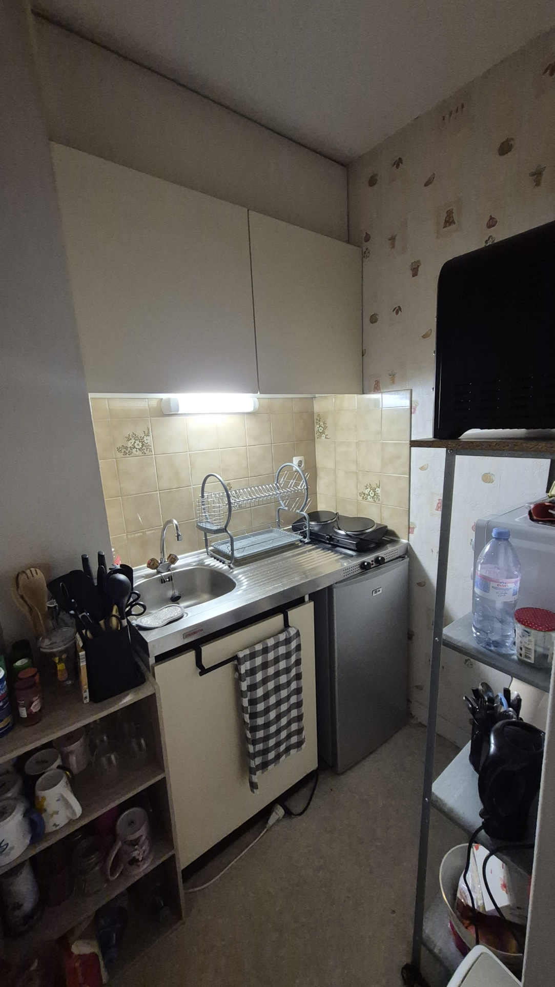 ...Composé d'une entrée avec placard, d'une pièce de vie donnant sur balcon, d'un coin kitchenette...