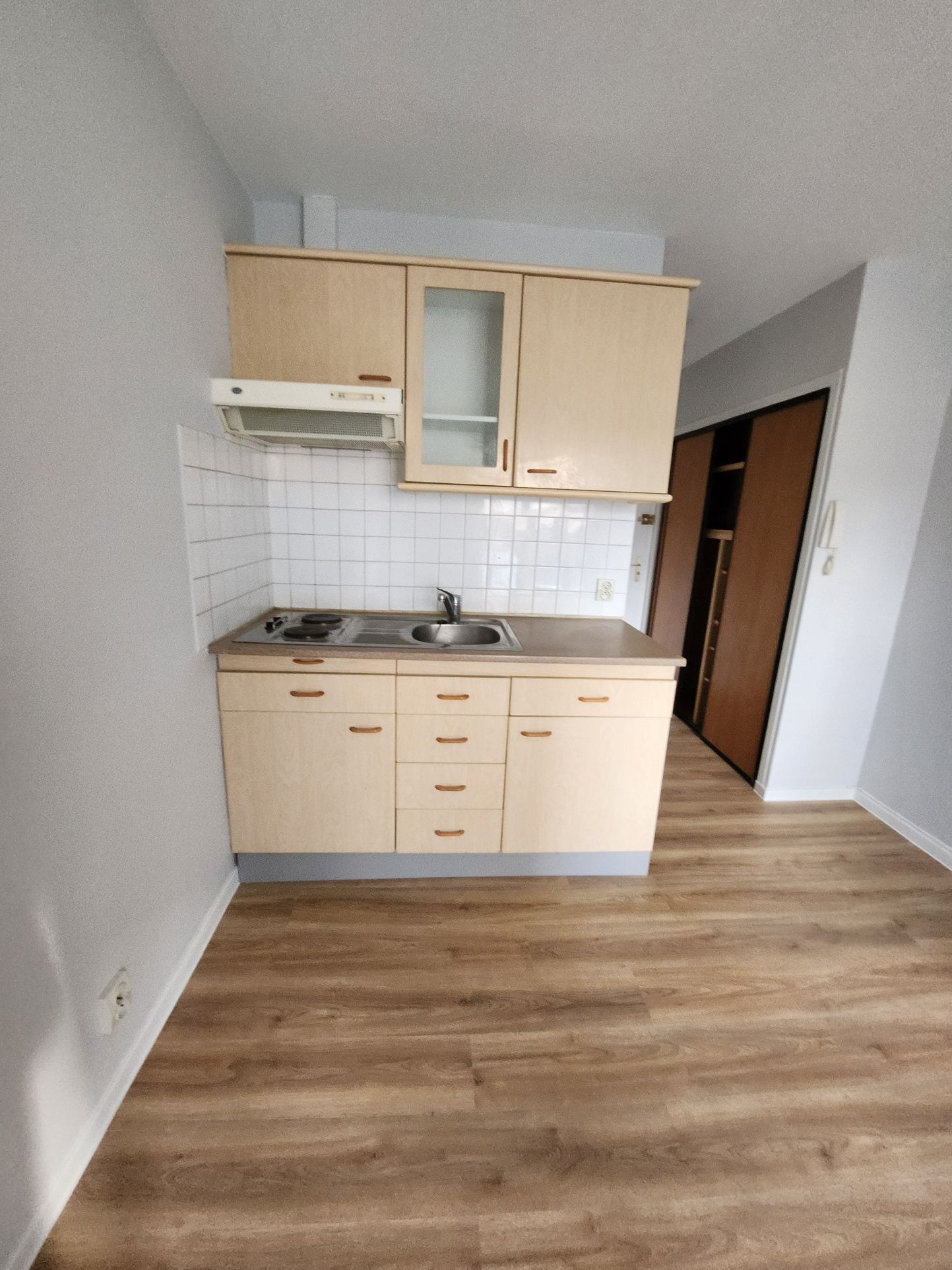 ...Il comporte entrée avec placard, coin kitchenette avec meuble de rangement, plaques électrique,...
