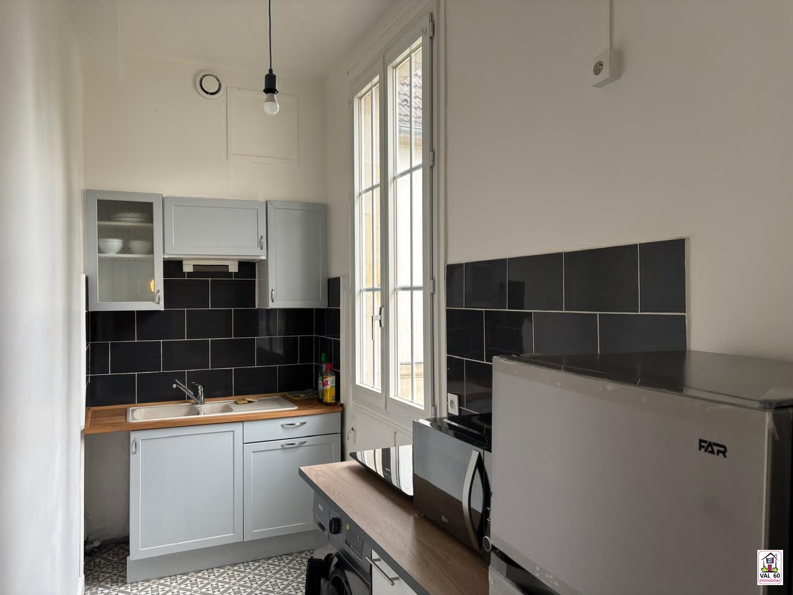 ...Cet appartement de 2 pièces est organisé comme suit : une chambre, une cuisine aménagée et...