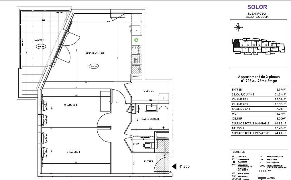 ...Piscine sur le toit terrasse 205- Au 02eme étage avec ascenseur, Appartement T3 de 63...