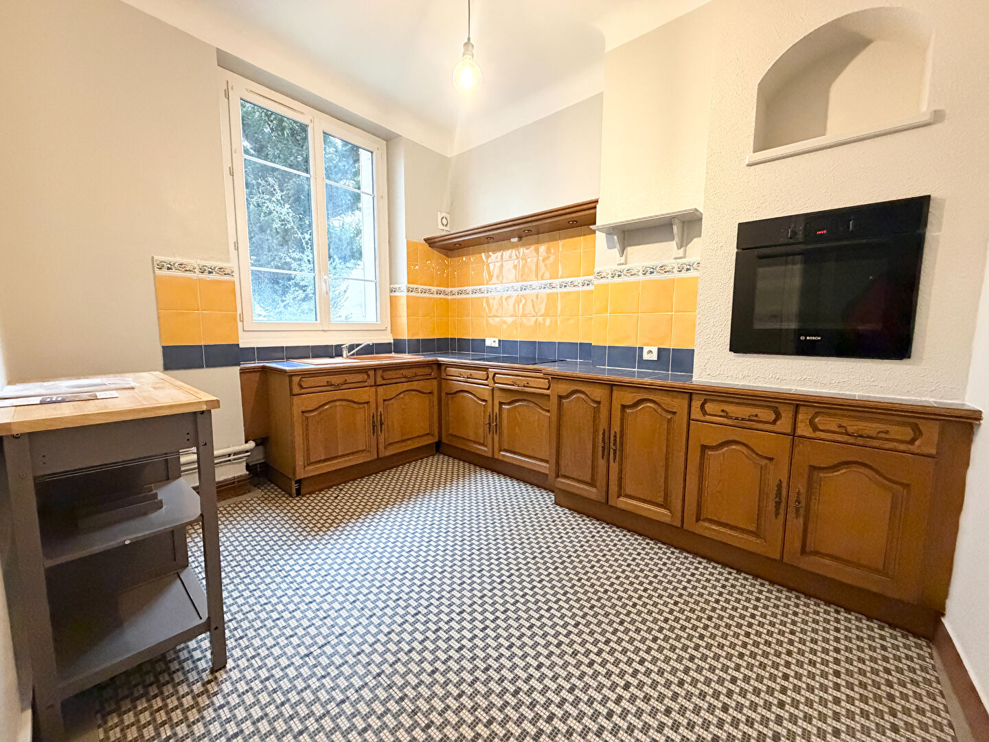 ...Une grande pièce de vie avec cuisine moderne et neuve, une chambre séparée avec dressing...