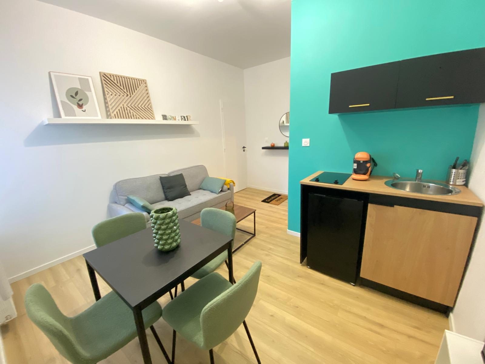 ...Il comprend : hall d'entrée, WC individuel, pièce de vie avec cuisine ouverte aménagée et...