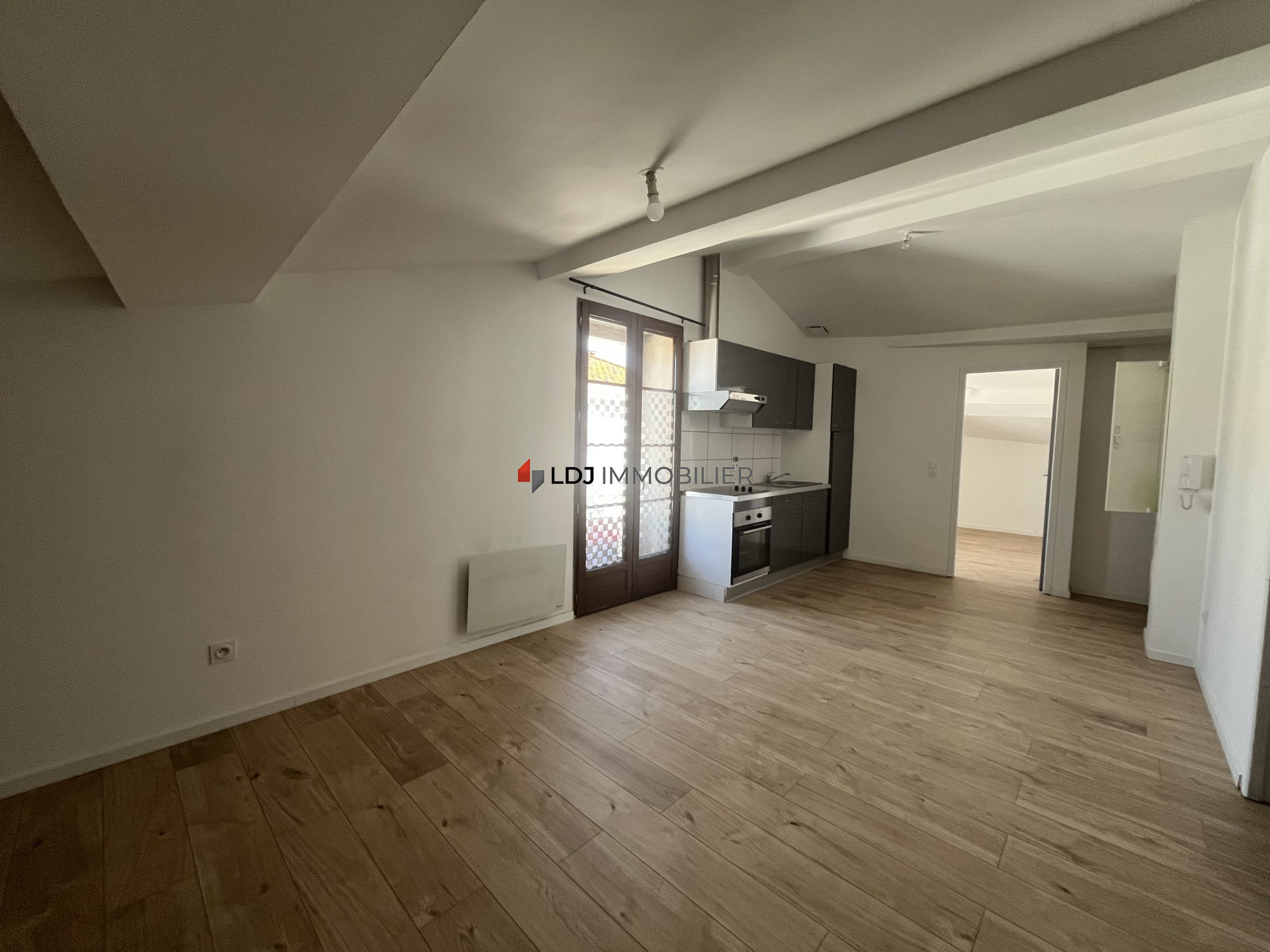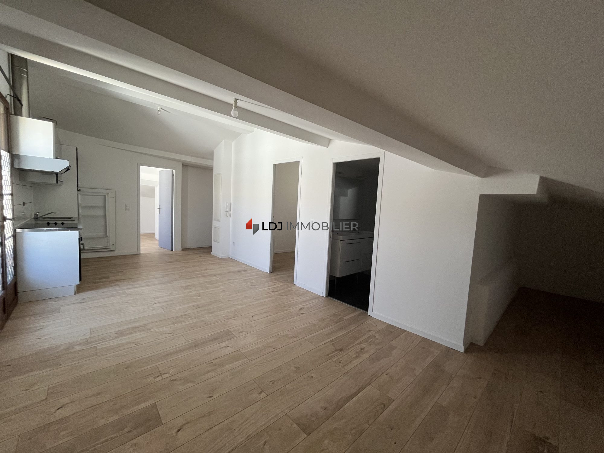 ...Il se compose d'une cuisine équipée (hotte, plaque de cuisson, four, lave-linge) ouverte sur un...