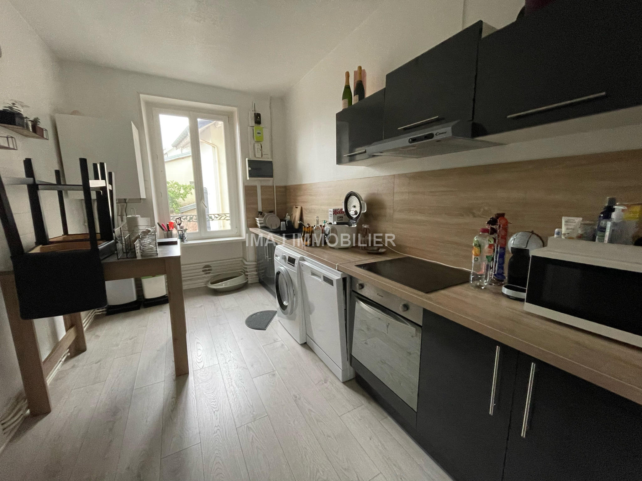 ... avec rangements, cuisine équipée, grand salon-séjour avec double balcon, deux chambres, salle d'eau...