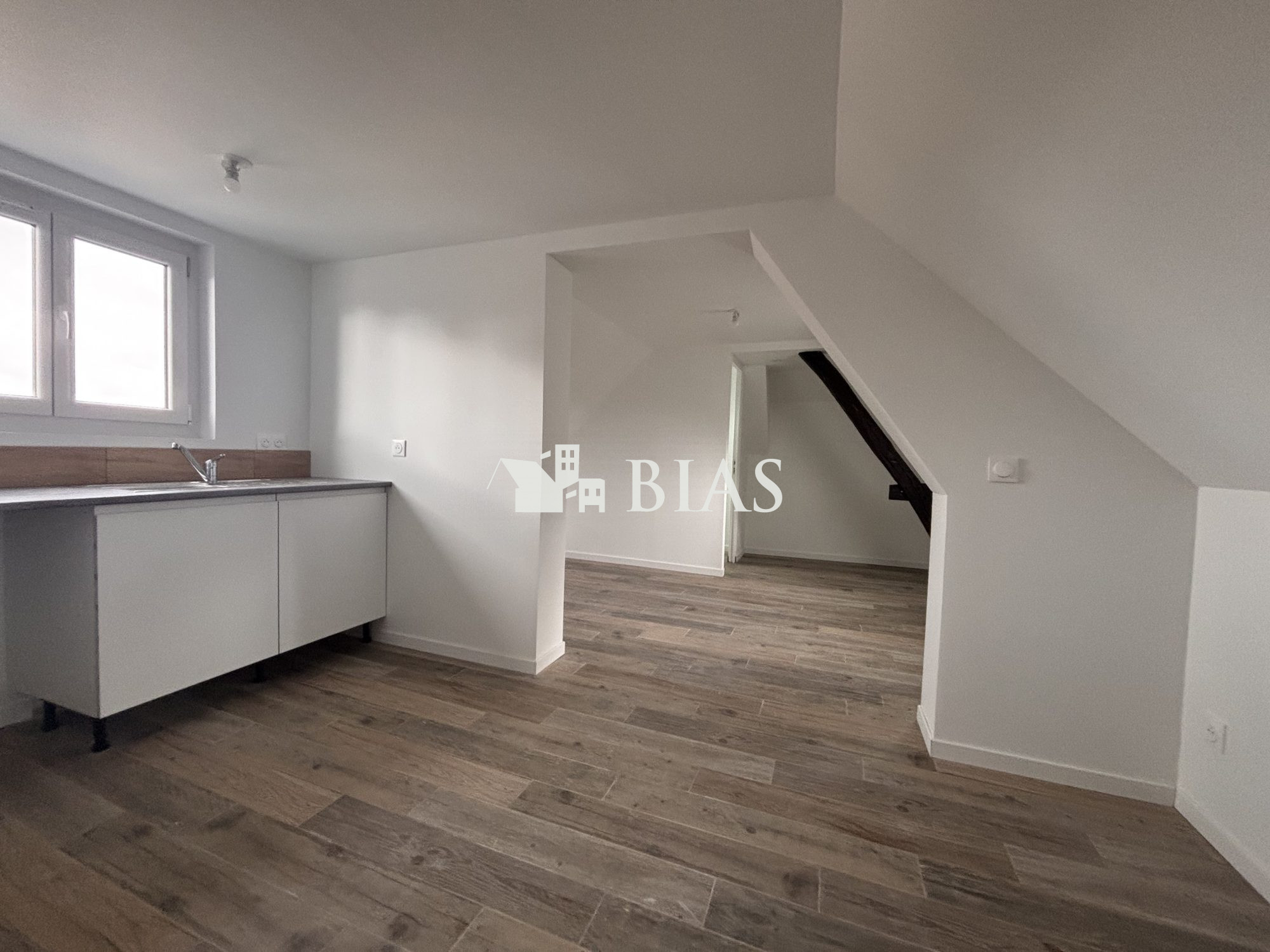 ...Appartement de type T2 duplex comprenant, entrée sur séjour avec coin cuisine aménagée et semi...